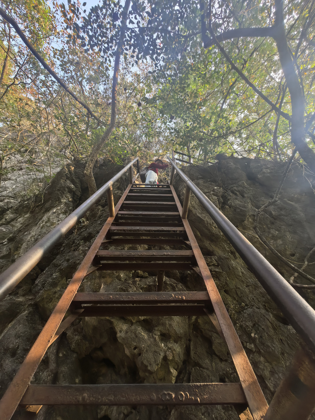象鼻山也可以爬,能俯瞰漓江桂林市,半山腰有个洞穴,山顶有塔。不过我们不想第一天就因为爬山累着,只上去了一半就下来了。