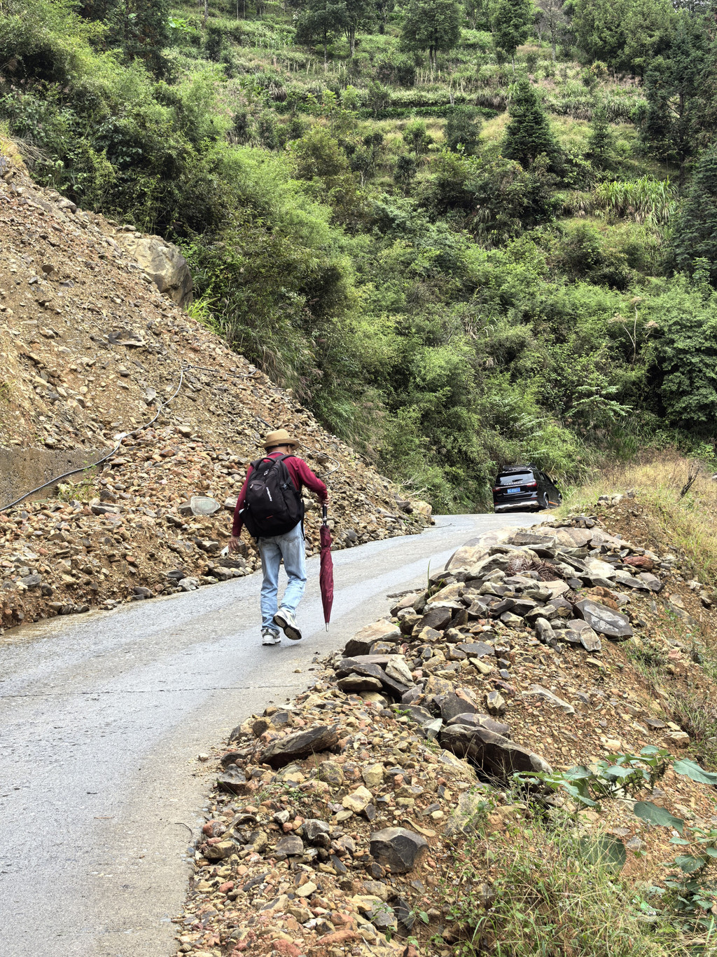 但真的提一下导航估算的步行时间,在山地地貌里一点都不准确。以前在 张家界 就体会过一次,这次还是这样,似乎它算的是平面距离,忽略了高低起伏。显示步行40分钟,实则我们足足走了2个多小时。一路先下山,再一路上山,本以为半天就能完成往返,结果到了中午才刚到。