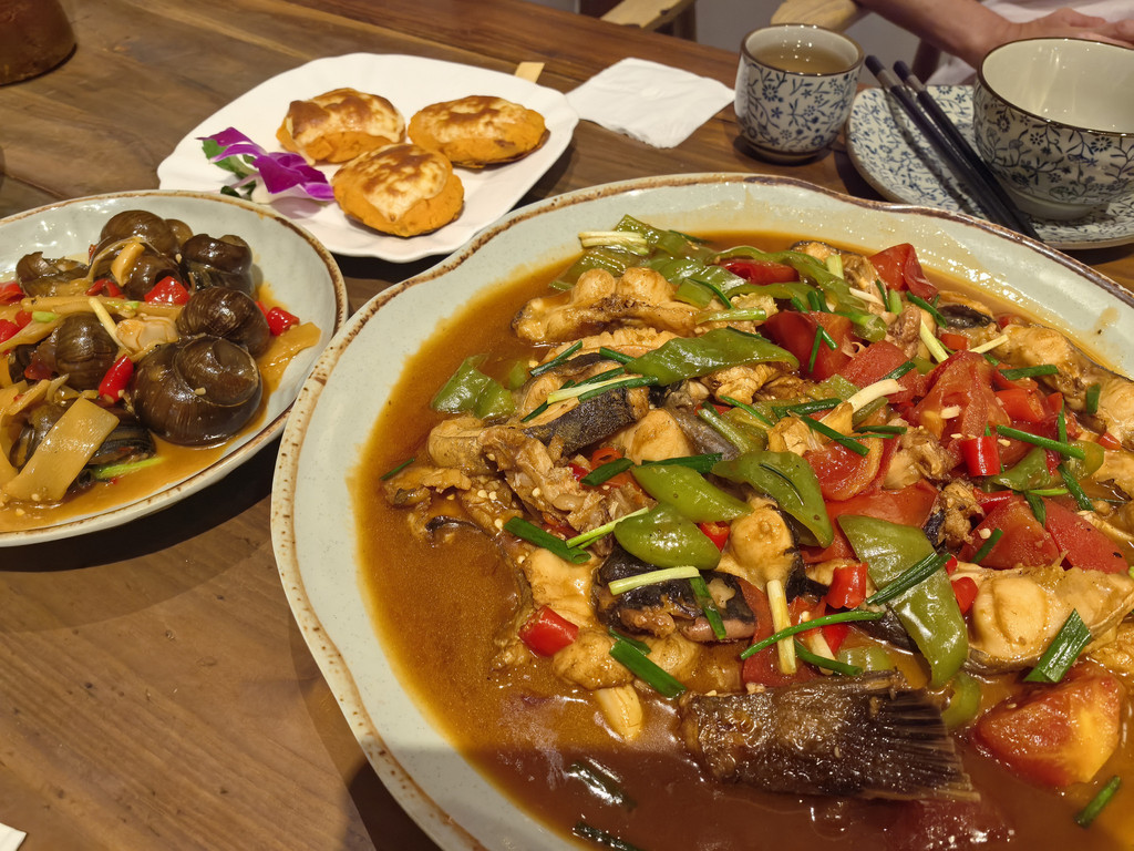 晚饭去了望江楼餐吧,正式吃下阳朔的啤酒鱼,剑骨鱼感觉口感挺像鮰鱼的,但似乎鱼皮胶质更厚些。