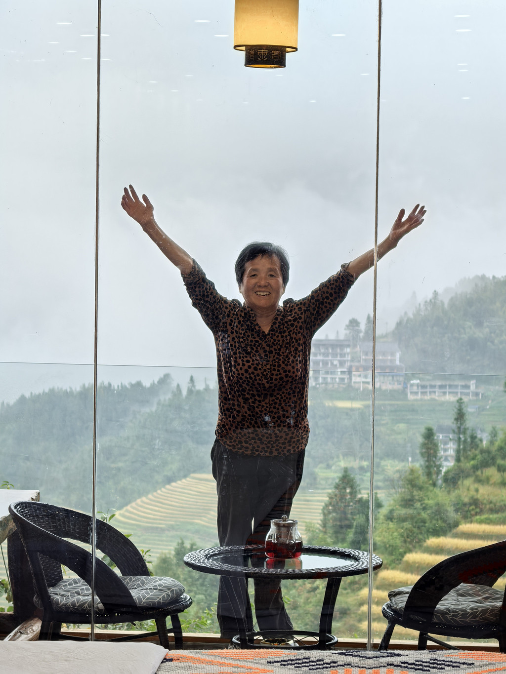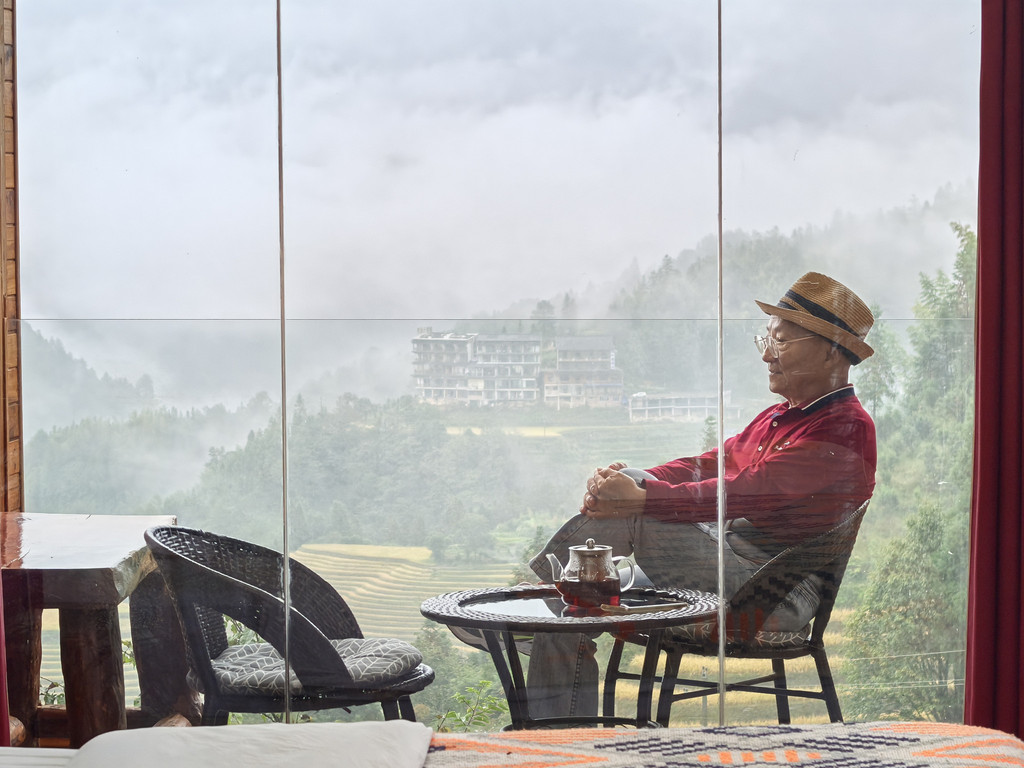 因为雨下的很大什么都看不见,本要先去金佛顶的只能改成先去民宿。 云林山居(龙脊梯田观景台店),位于田头寨靠近2号观景台千层天梯。是我个人觉得景区里性价比比较高的民宿。这里的民宿价格基本根据房间是否自带梯田观景广阔度而越来越贵。这家观景视角有些遮挡,所以价格相对没贵的离谱,但硬件服务挺好的,不比酒店差。