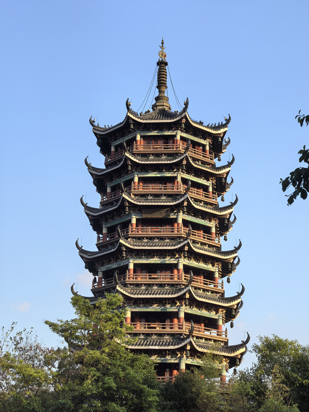 白天的日月双塔比晚上亮灯的沉稳低调,下午隔湖望塔的角度是逆光的,进入塔需要购票。