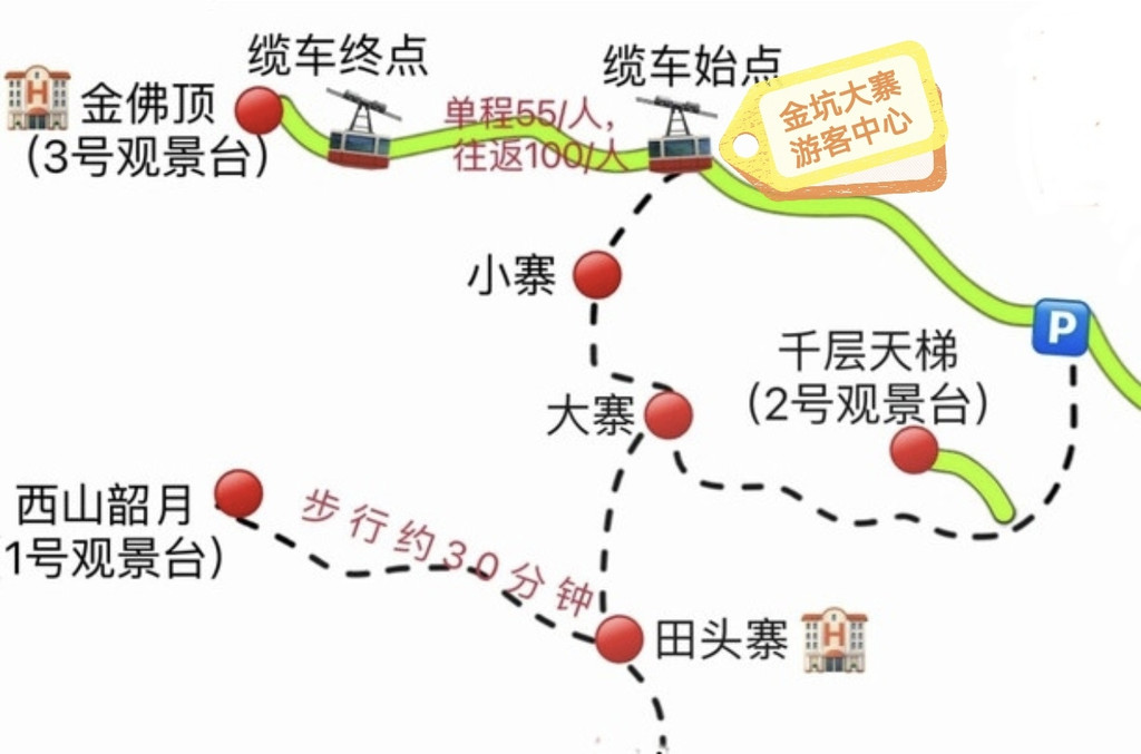 ②行李在游客中心找店家寄存,买缆车票上山到3号观景台金佛顶,单程自己走下来,或直接往返缆车。