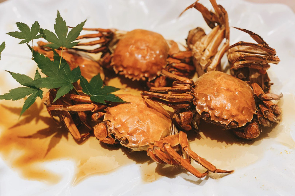 宋城锦绣风味碟中,最吸引我的是应季菜“熟醉蟹”。现在正是“秋风急、蟹脚痒”之时,我虽身在上海也能品蟹不少,但是扬州宴的熟醉蟹,个头不大,但黄肥肉厚。将螃蟹蒸熟,再用酒醉,吃进嘴里是回味悠长。