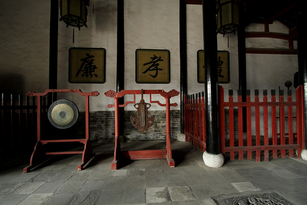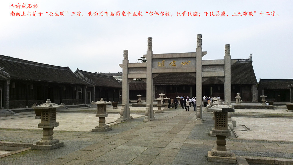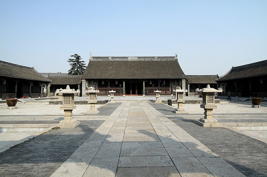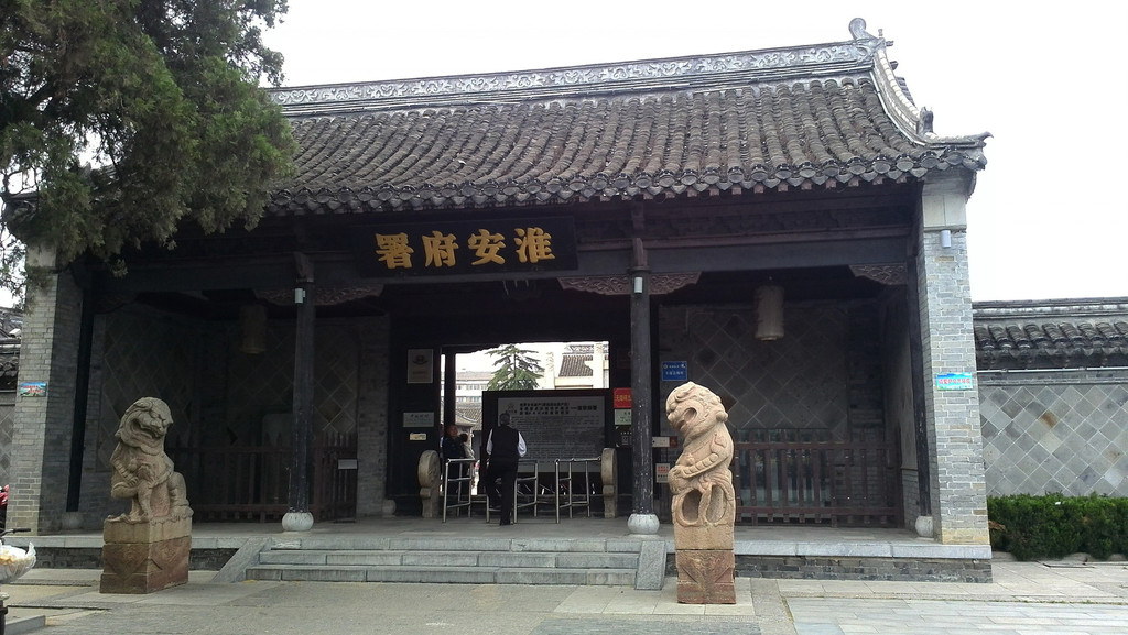 淮安府署是一座古代府级官衙建筑,目前全国最大的明清府衙景区。占地面积5万多平方米,共有房屋600多间,分东、中、西三路,中路为大堂、二堂、六科用房等,东路为迎宾游宴之所,西路为军捕厅,大门外有石狮、照壁、牌坊等。