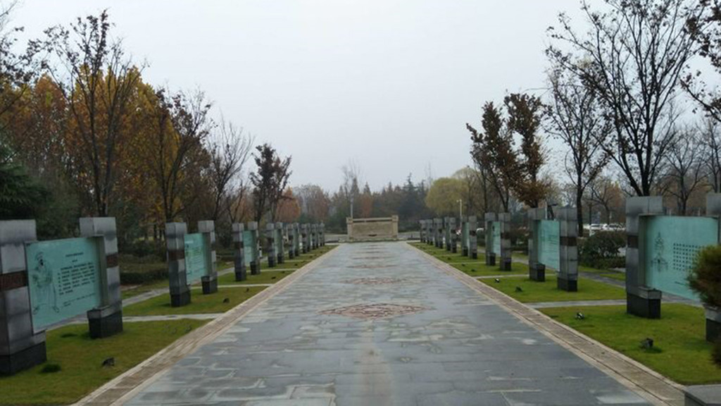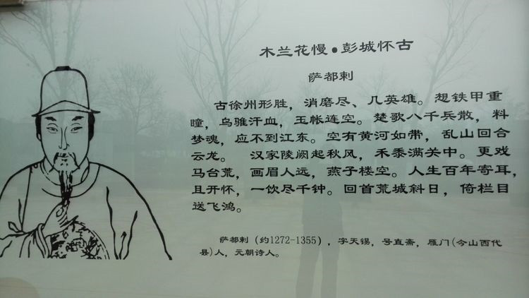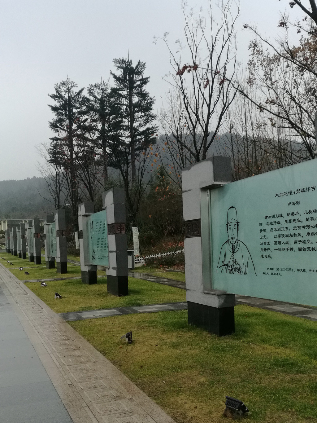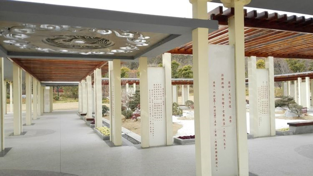 诗博园占地面积约85亩,通过景墙、屏风、玻雕、小品等形式,石材、玻璃、金属等材质,展示春秋战国到近现代的徐州诗词景观小品68首。
