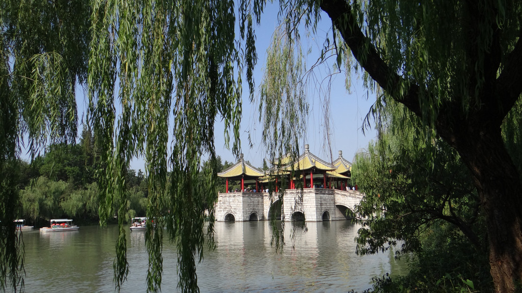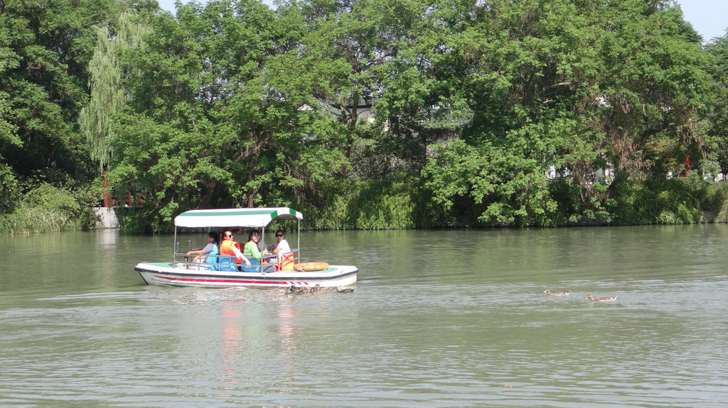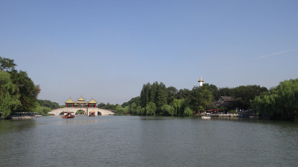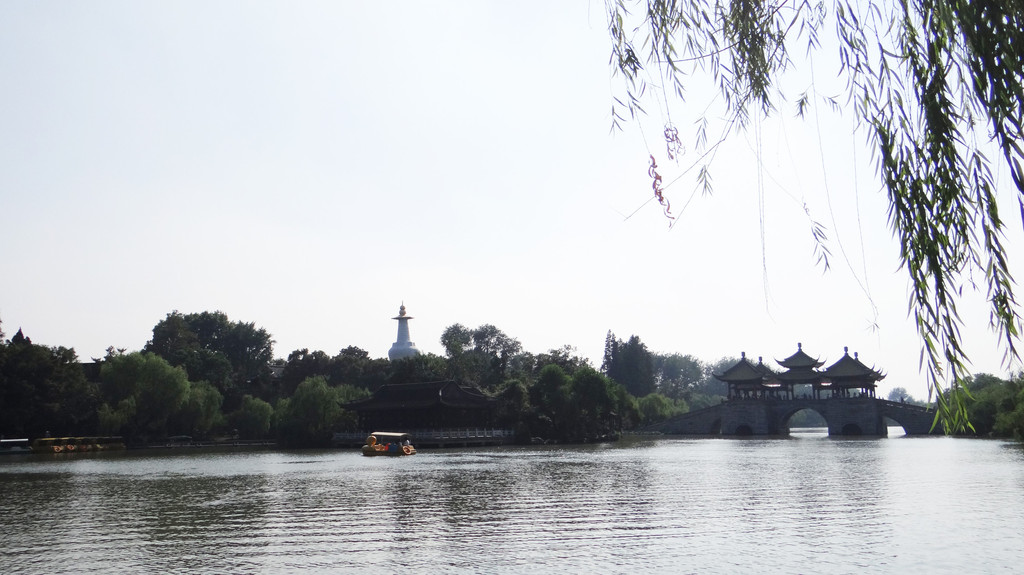 第一站,瘦西湖。游览方式为:先沿湖边走一圈,然后乘坐画舫游览。