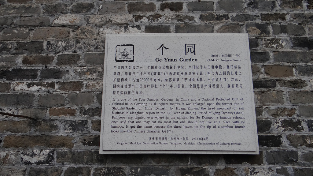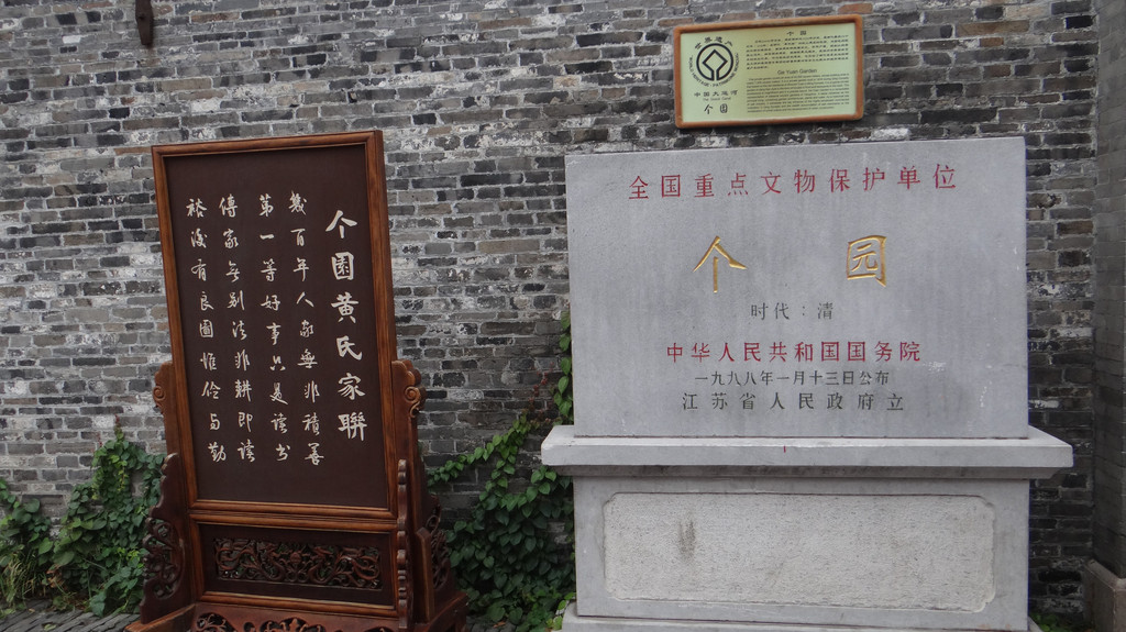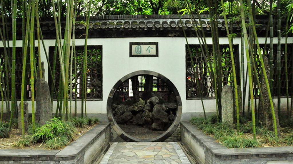 扬州个园由两淮盐商黄至筠1818年建造,景观以竹石取胜,被誉为“中国四大名园”之一。园名中的“个”,是取“竹”字的半边。