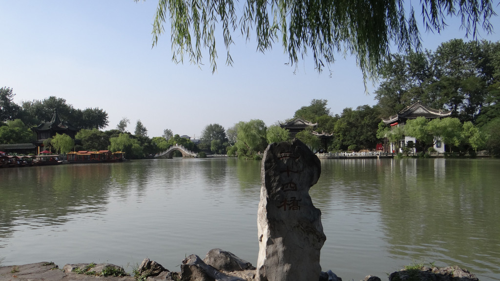 二十四桥景区。“二十四桥”出自唐代诗人杜牧《寄扬州韩绰判官》中的诗句“青山隐隐水迢迢,秋尽江南草未凋;二十四桥明月夜,玉人何处教吹箫”。也有种说法,二十四桥是泛指唐代的扬州桥很多。
