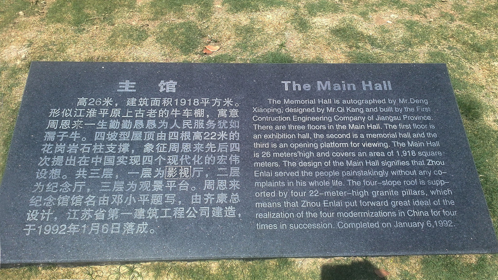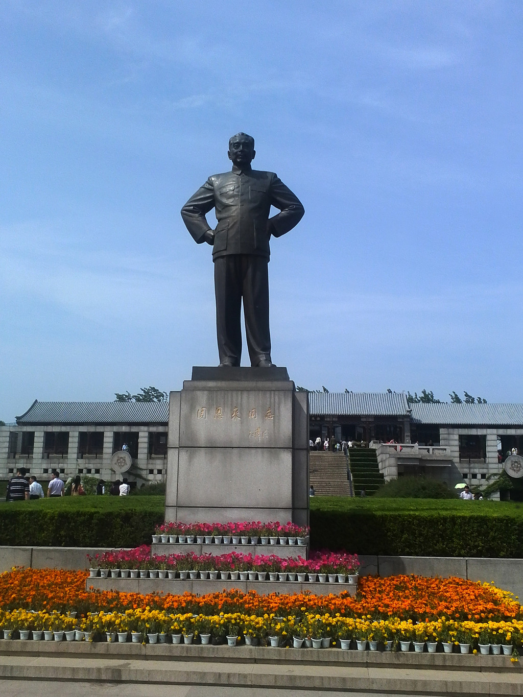 我们的行程从观瞻周恩来纪念馆开始。纪念性建筑分布在南北长800米的中轴线上,从南向北依次为瞻台、主馆、附馆、周恩来铜像等。