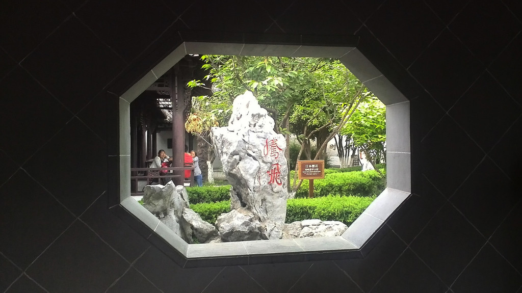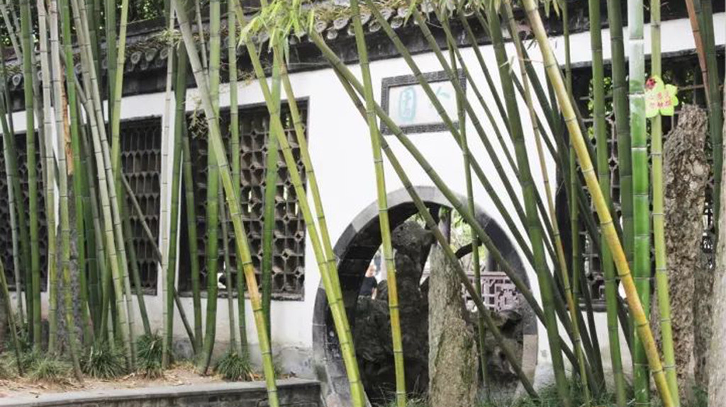 春山,不如说是“春景”更为贴切,因为此处根本没有“山”,仅仅是园门两侧几竿随风摇曳的翠竹和竹间几块笋石,竹石相配,宛如雨后春笋,展现着破土而出、节节向上的盎然春意。