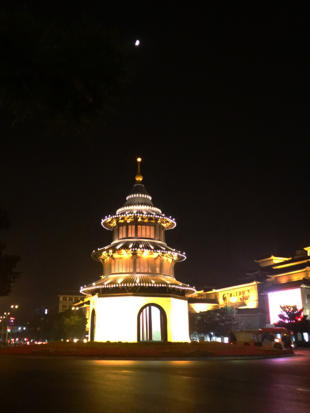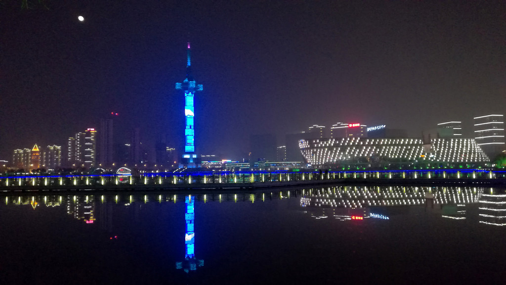聚龙湖公园是一个开放式公园,有水韵舞台、音乐喷泉、九曲栈桥、清风馆、水云轩等景点。我们绕湖一圈,感觉电视塔、文化艺术中心视觉效果不错。晚上灯光五彩缤纷,一轮明月倒映水中,比较壮观。