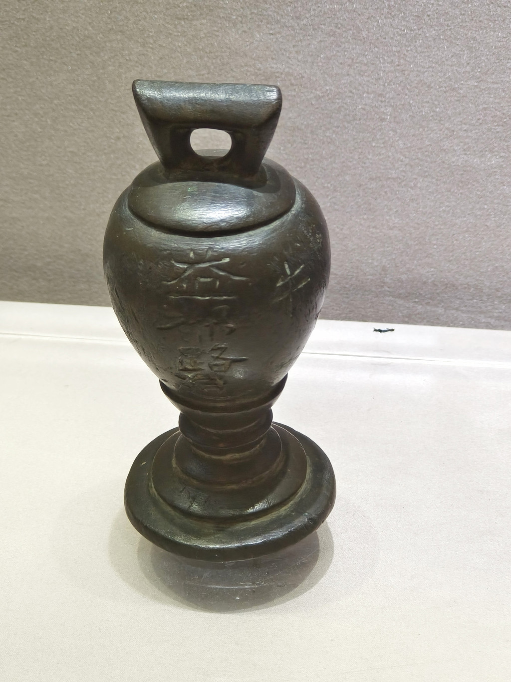 真武神铜造像(明嘉靖),镇馆之宝之一。长29厘米,宽16厘米,高42.2厘米。多神合体,主神为真武大帝,助其降魔的四帅分列左右,前端为龟蛇灵兽,背部雕刻47字铭文:“寿州下蔡大山东信士马铠同子马儒等合家共发心奉请祖师并四帅等金火匠黄柏嘉靖四十一年十一月十五日请”。据铭文可知,这是明朝真武信仰的实物见证。