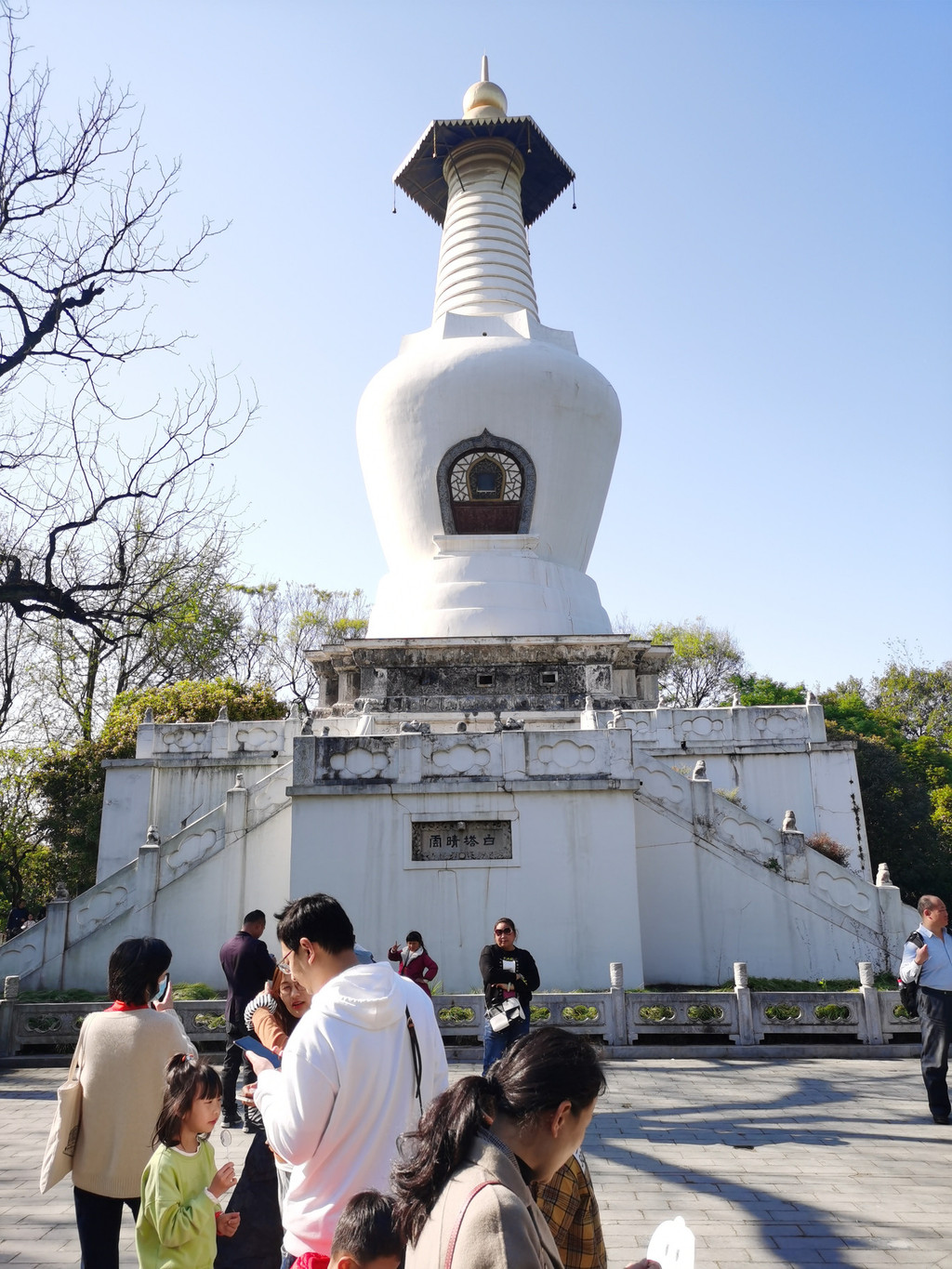 景区实行单线游行管理,只能逆时针行走。我们大致走过白塔,再到小金山,五亭桥等景点。白塔的由来据说是乾隆皇帝游玩廋西湖的时候,说此地和北京北海公园很相像,就只差一座塔了。于是就兴建了这座白塔。