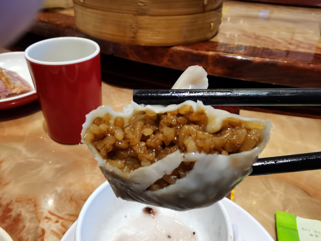 第二天上午,8点多一点醒来,但是我居然在等同行者处理工作上的事,接近10点才出门,呵呵。这时候冶春和花园茶楼已经排起了长队。听说过花园茶楼是本地人去的,更实惠。但这时候我们已经管不来哦那么多了,哪个排队快就去吃哪个。冶春茶楼一批一批地放人进去,约摸11点不到去了冶春茶楼开始点餐。冶春茶楼真是一座难求。2,3个人只能和另外的拼桌在一个大桌子上。味道还可以,但是很贵!
