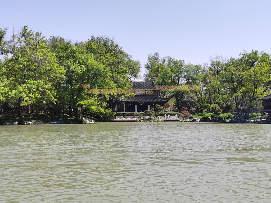 到达廋西湖已经中午12点了,从南门入园的。不知怎么的,看到一个渡口乘船排队的人少就上船了,买的是两站。现在看看这个两站有点坑,没有必要。因为它两站指的不是中间停一站,你下去游玩,玩好了再登船这种,而是两站的距离(南门码头-小金山-二十四桥),中间不停。如果买一站,那么就是在中间停。其实最后还是要绕回来走到小金山的。。。 只能在船上欣赏一下风景了。