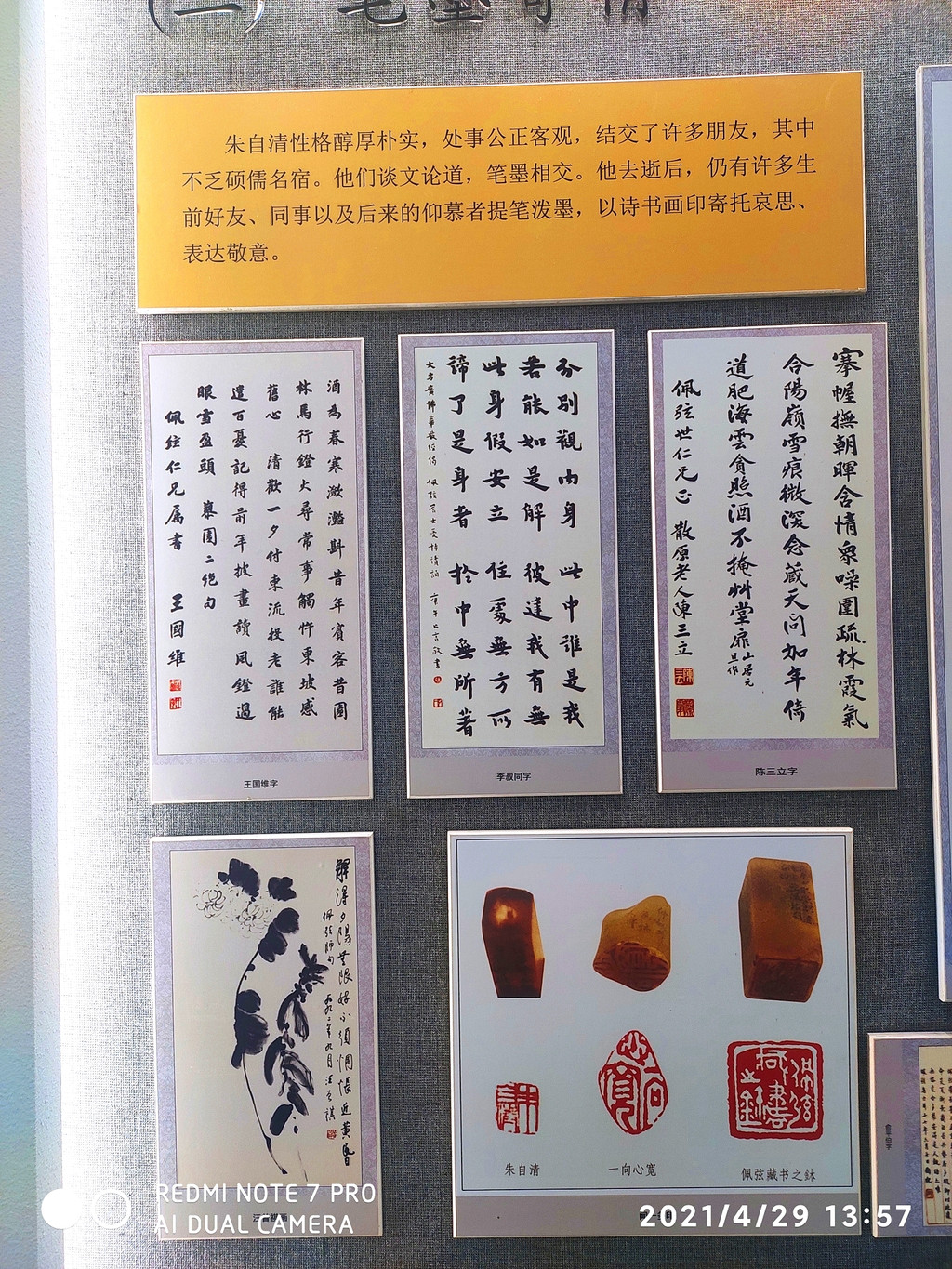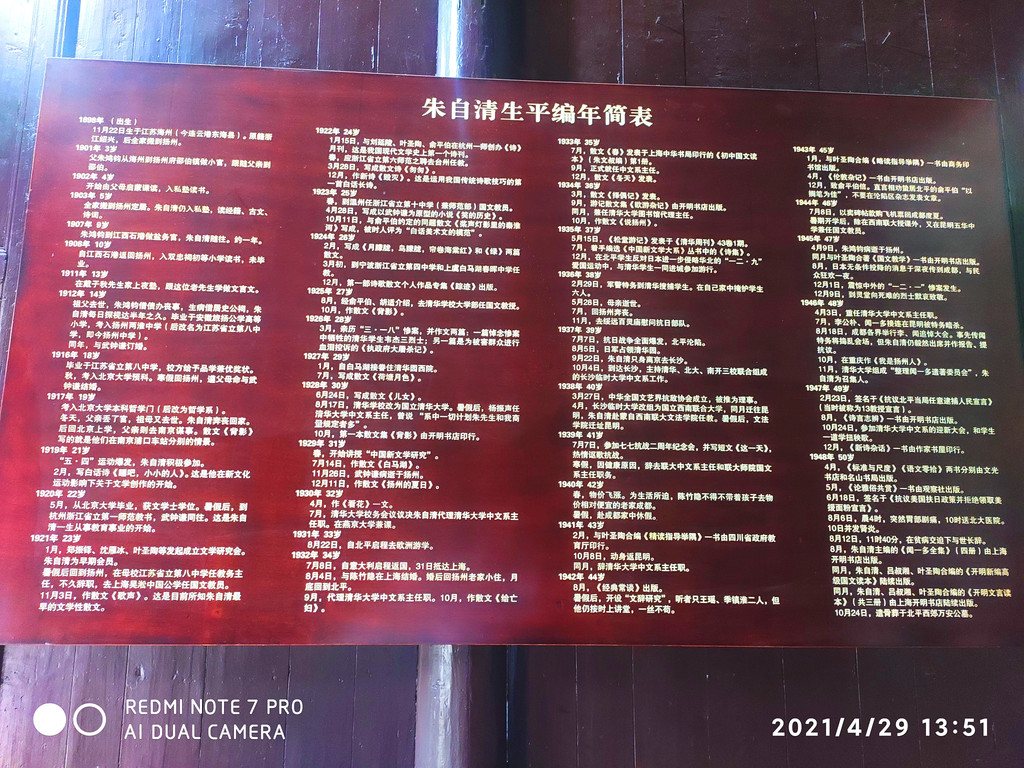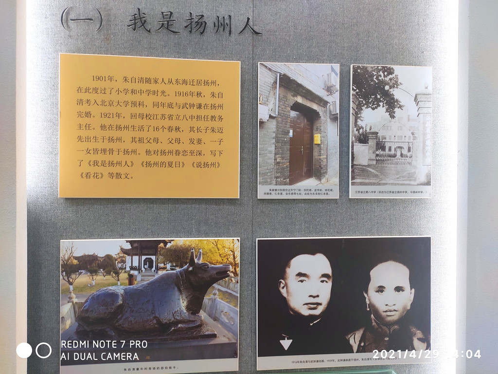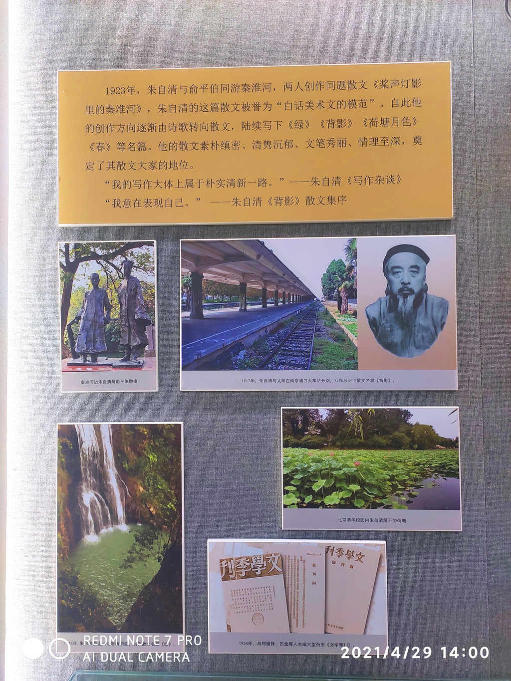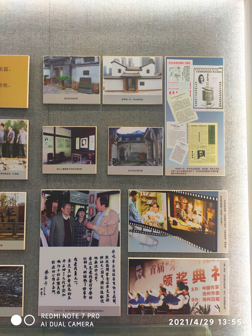 展览馆里陈列着各种资料,介绍了朱自清的一生。