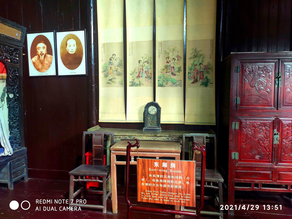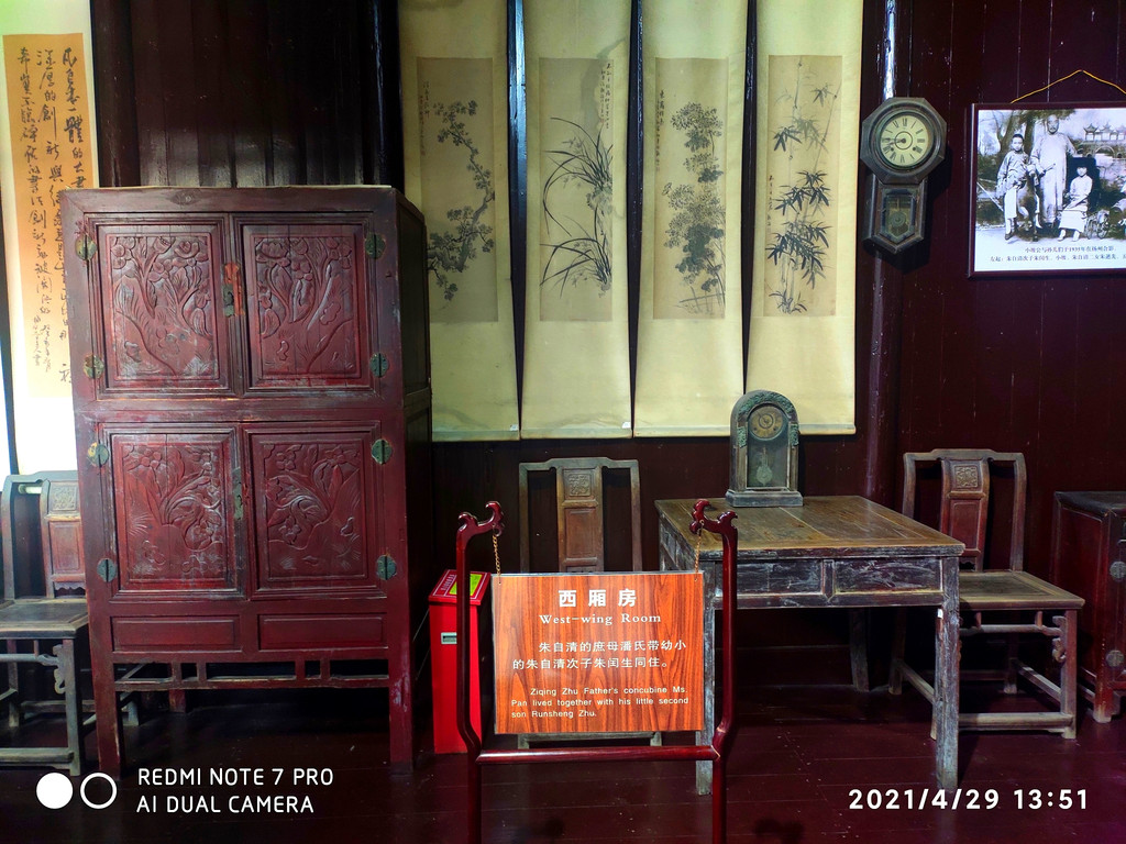 东厢房为朱自清的父母所住,朱自清写的《背影》里的老爸胖胖的,当年他就住在这里,而如今只见胖爸爸的画像挂于墙上,背影无处可寻。