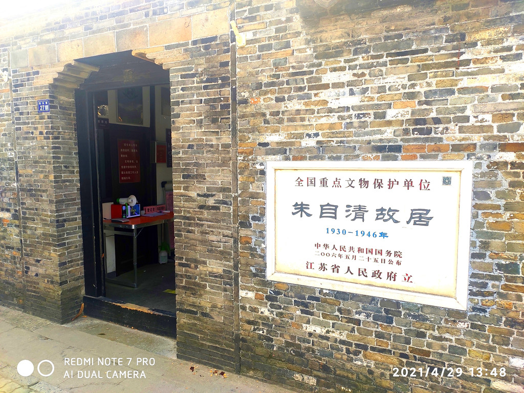 朱自清故居在江苏省扬州市安乐巷27号,为晚清所建,今仍完好,计三间两厢一对照,另客座两间,大门过道一间,天井一方,是扬州传统的三合院式民间住宅。