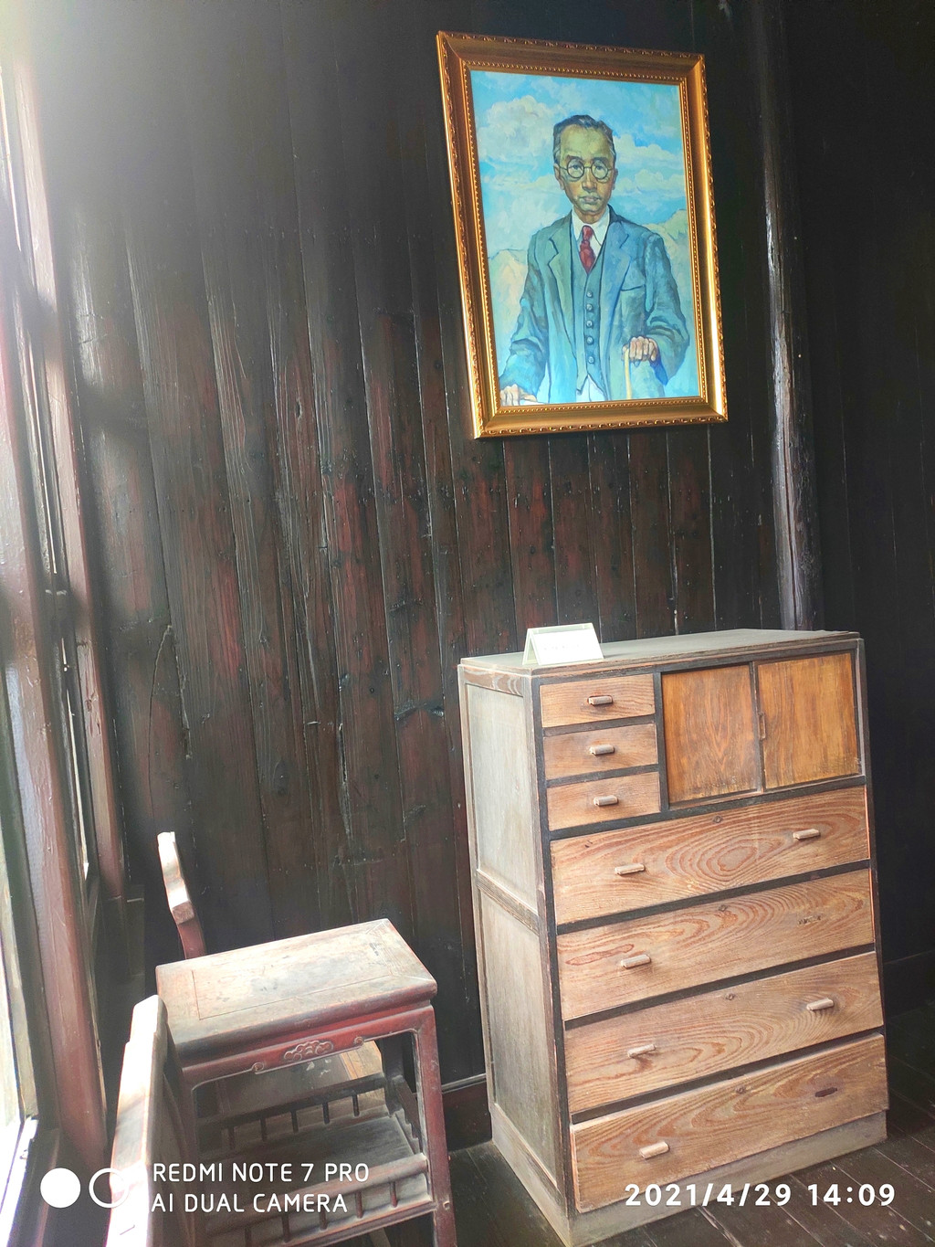 卧室里已无朱先生的身影,只有朱自清先生的画像了,是由著名油画家所作。