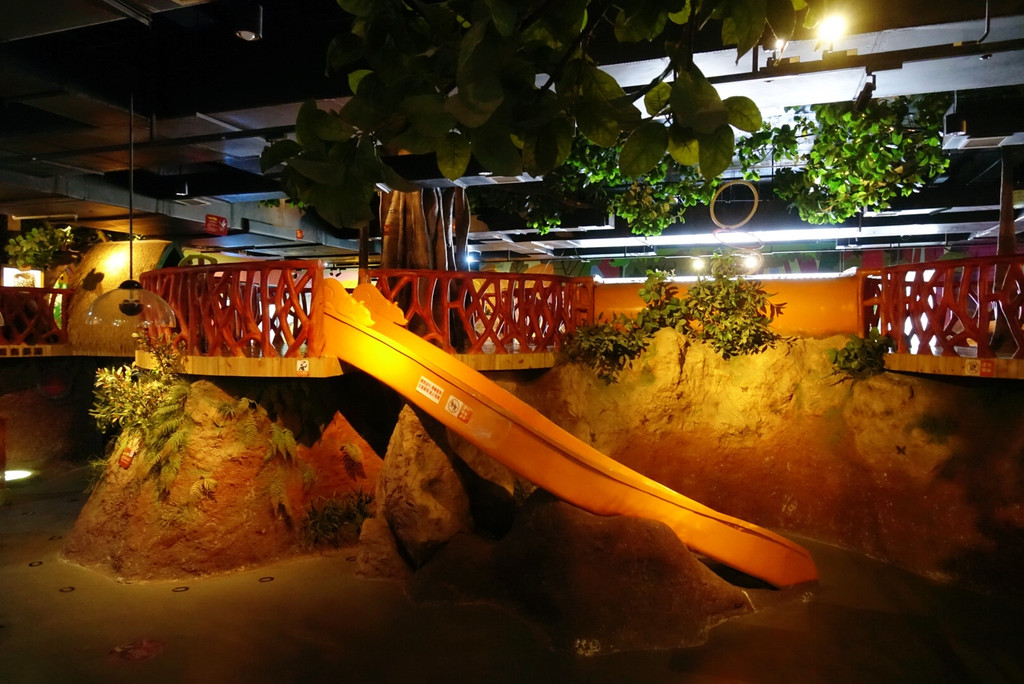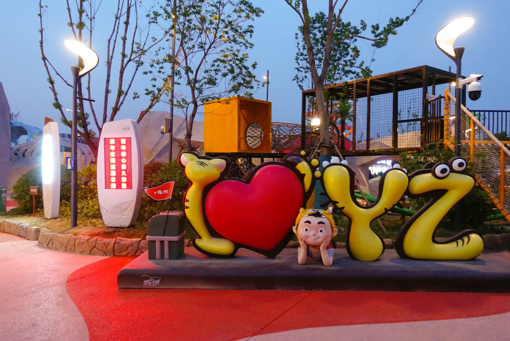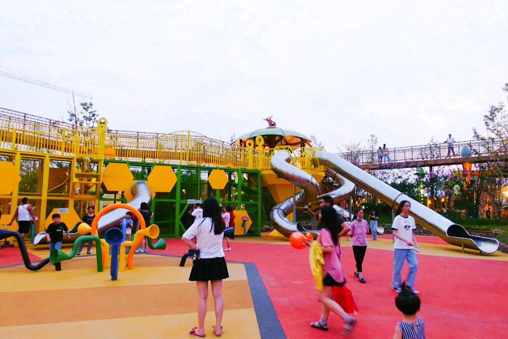 傍晚六点之后,前来的游客越来越多,晚上游玩乐园其实更舒心,毕竟没有艳阳高照,很多人买了晚场票带孩子来玩,这里的滑滑梯还是比较适合大一些的孩子,充满了探索与思考,但家长最好时时刻刻看护着。