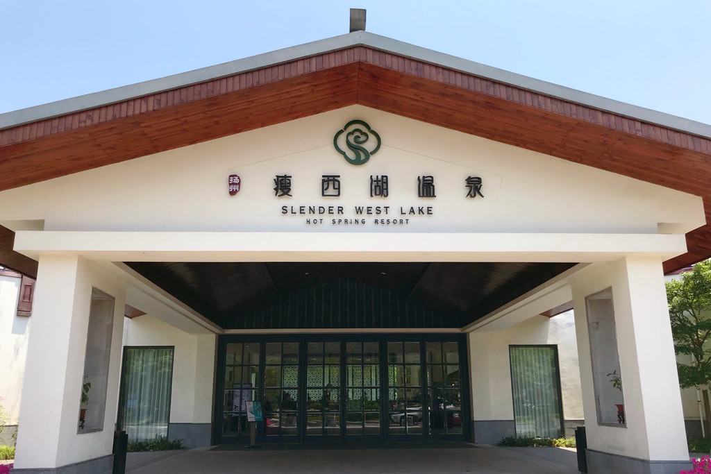 瘦西湖温泉度假酒店的大堂就对着瘦西湖景区的东门,酒店内有接驳车直接送你到酒店大堂门口,然后自己步行穿过一条马路就到了。