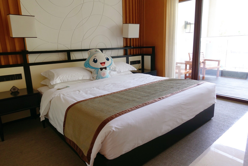 我们定的是带阳台的大床房,这里从迎宾带路的大叔到房间打扫卫生的阿姨服务态度真的是好到让人难忘啊,大热天的很有耐心,告诉我房间和酒店的布局,房间冰箱内的饮品是全部免费使用的,带宝宝来还有小礼盒、儿童拖鞋以及儿童洗护赠送,细节决定下次有朋友来我也会推荐。
