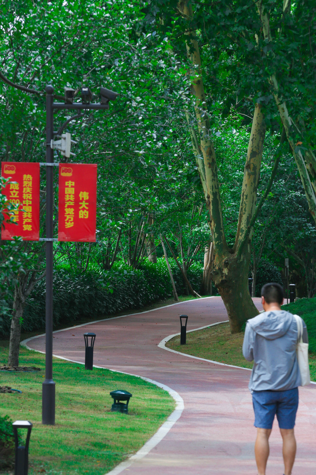 蜿蜒曲折的林荫大道,仿佛在指引“幽处”的魅力,一路上听听历史,谈谈王安石,讲讲那是瓜洲古渡的人来船往,大运河的繁荣跃然于脑海中,不禁为先人的智慧赞叹!