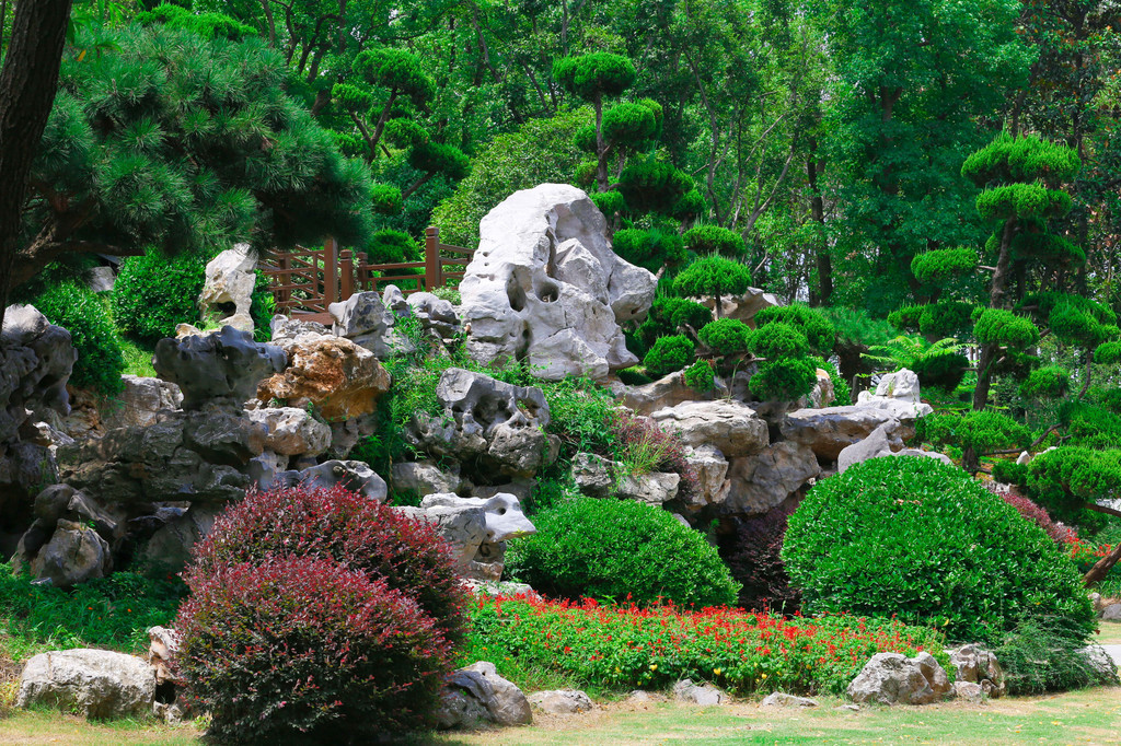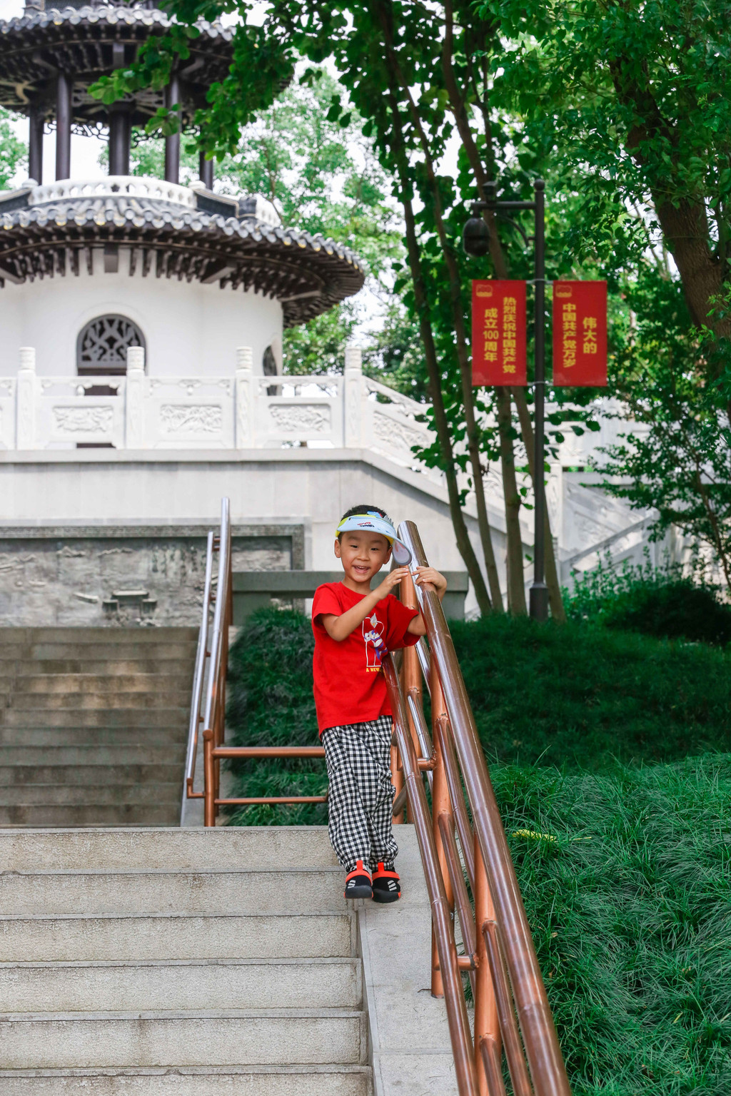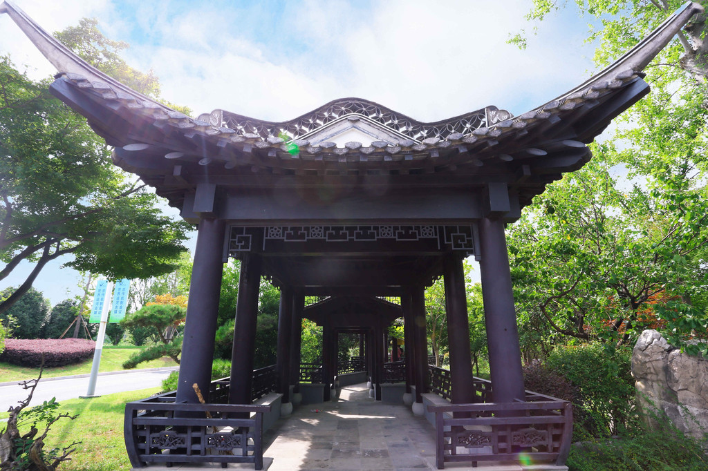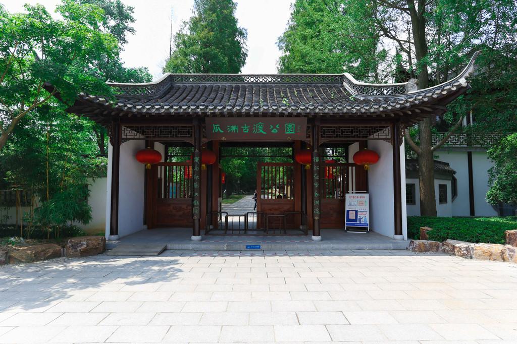 “绿”,确实是这里景观的代名词,层层的假山巨石掩映在苍翠之中,满眼生机勃发,仿佛在向游人诉说着“古渡今朝亦明媚”。