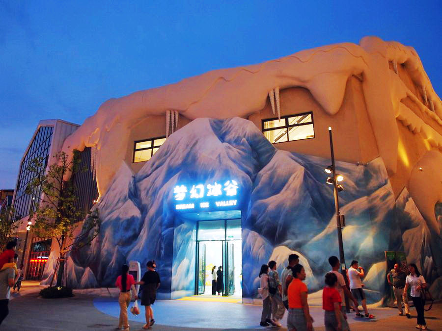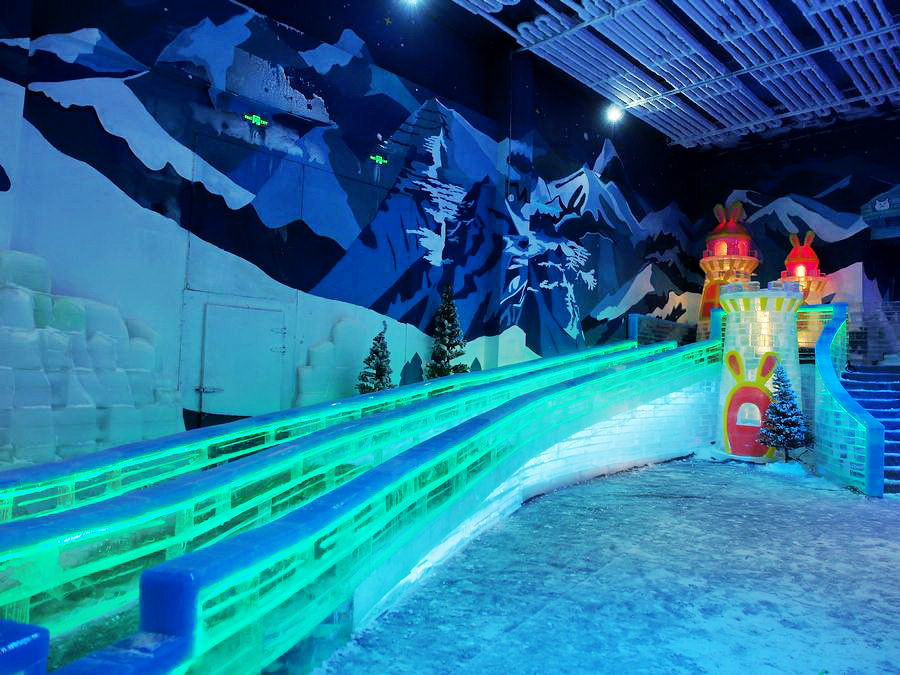 走进去,那叫一个透心凉啊!场地很大,空中还飘着细碎的雪花,从暑热到冰雪世界,真是一秒自由切换。