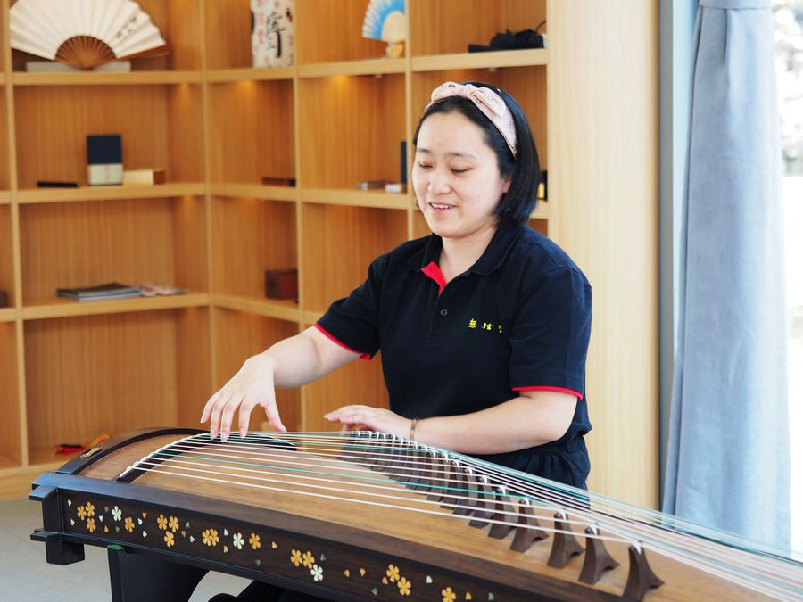 守店的姐姐见我感兴趣,坐下来,十指挥动,就弹了一曲。琴声如清涧溪水,淙淙流淌,很快吸引了好几个人推门而入。