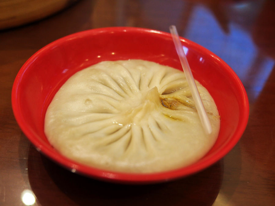 蟹黄汤包,吃的时候要先用小吸管在包子上轻轻挑一个孔,把汤喝掉,然后再吃包子。不然筷子一夹起,汤就都淌出来了,那就太可惜!