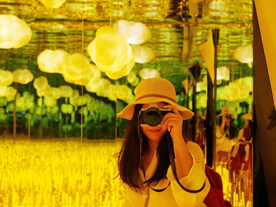 空间虽然不大,但因为镜子的折射原理,看上去,简直有无边无际的感觉。很多女孩子,在里面拍照拍到不肯走。