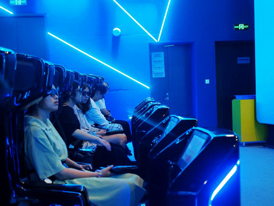 走进去才发现自己想得简单了,深蓝色的灯光,黑色座椅,到处都透着酷酷的金属感、机械感,让人眼睛一亮。