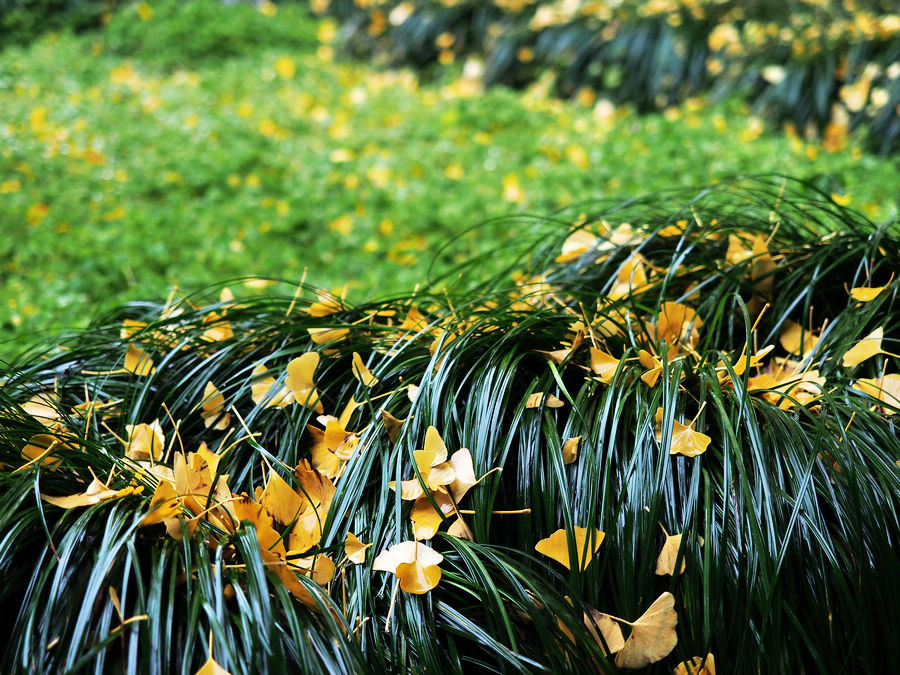 落叶如蝴蝶般,到处都是,廊檐下,草丛里,台阶上……每年银杏黄了的时候,这里是摄影爱好者最青睐的地方。