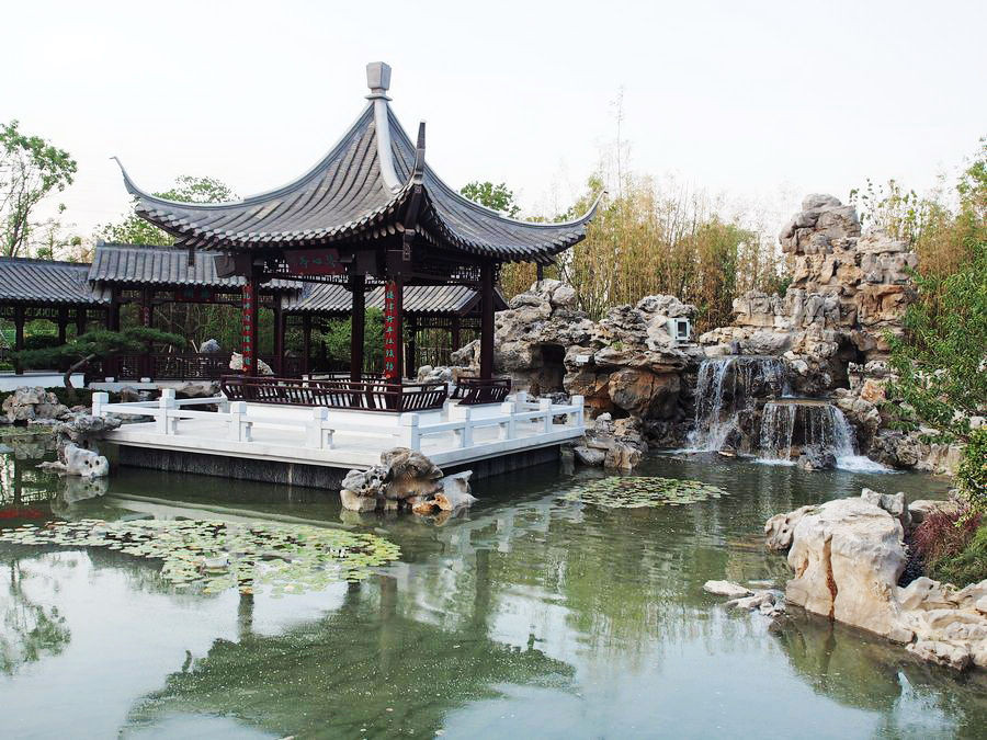 亭台楼阁,小桥流水,圆月高悬。恍惚中,好像徜徉在瘦西湖畔,“天下三分明月夜,二分无赖是扬州”啊!