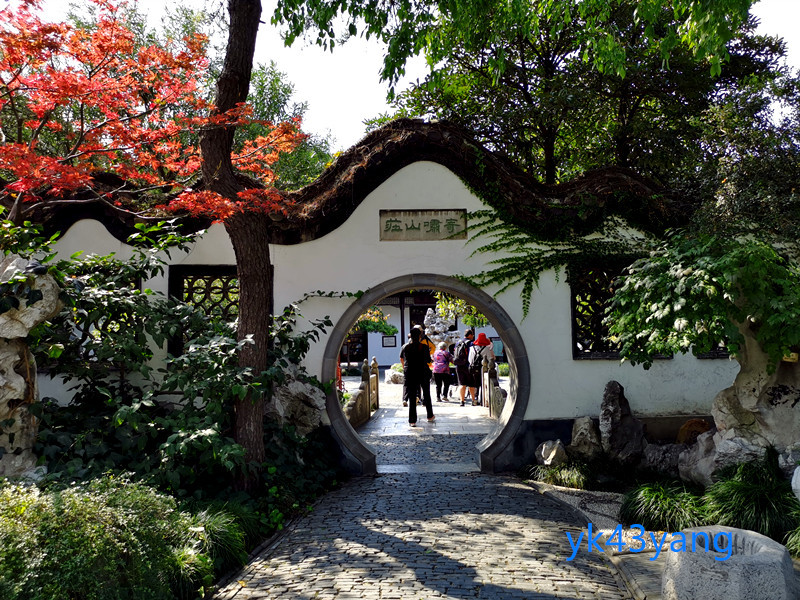 进入大门,是一小庭院。从这扇月洞门,进入东园。月洞门上镌刻的 “寄啸山庄”,是何芷舠当年的亲题。“寄啸”两字,取自陶渊明《归去来辞》中的“依南窗以寄敖,登东皋以舒啸。