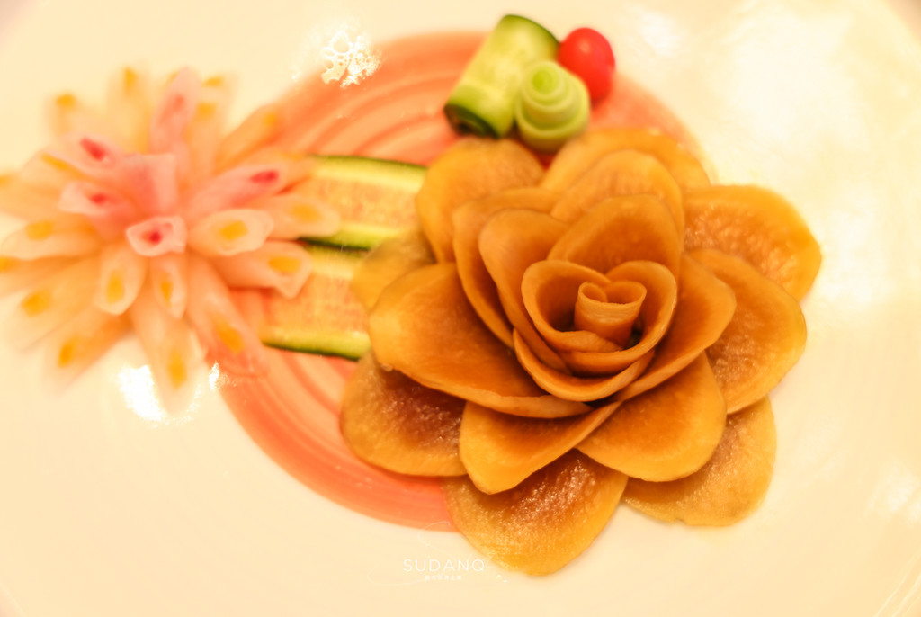 值得一提的是,这家酒店的厨子的刀工实在厉害,端上来的精美冷碟捌味的造型特别精美,精湛刀工一目了然。