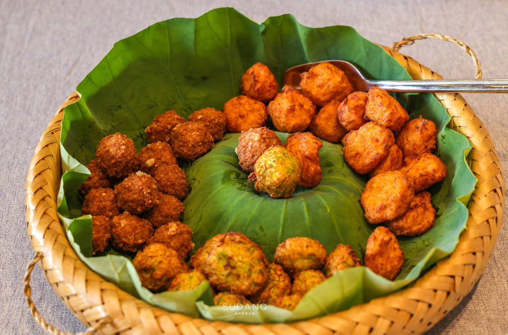 扬州宴不仅有传统淮扬小吃,还有精致淮扬菜,集新鲜、中和、时尚、养生于一体,有经典的高邮双黄鸭蛋、有葱香肉饼蒸青蟹、有砂锅生焗大黄鱼、有油渣高邮汪豆腐等美食,可谓是还原了汪曾祺老先生《人间草木》乡土宴的一席江南风土。