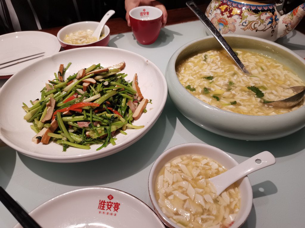 中午在附近吃午饭,肉和荠菜馅双拼的馄饨12元一大碗,下午镇淮楼