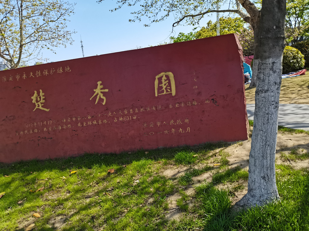 楚秀园位于市区中心,占地面积48公顷,因古时属楚,又是淮安境幽景秀之处,故得名。楚秀园原为老清江城外的一片湖泊沼泽地。清朝曾在此训练水师。明朝武宗皇帝南巡时,曾驾小船在此捕鱼取乐,不慎落水,回京后染病,第二年身亡,故留下了脍炙人口的“跃龙池”典故。1958年修建为公园。园内水面开阔多变,地形起伏连绵,景色秀丽雅致,共有4大景区,10个景点,并设有动物园,月季园和儿童乐园等专题园区,形成园中有园、景中套景的格局。旅居台湾的淮安乡亲又捐资在园西北角重建御诗亭(俗称龙亭),该亭六角重檐,覆以绿色流璃瓦,内置碑石,成为园内一处新景观。