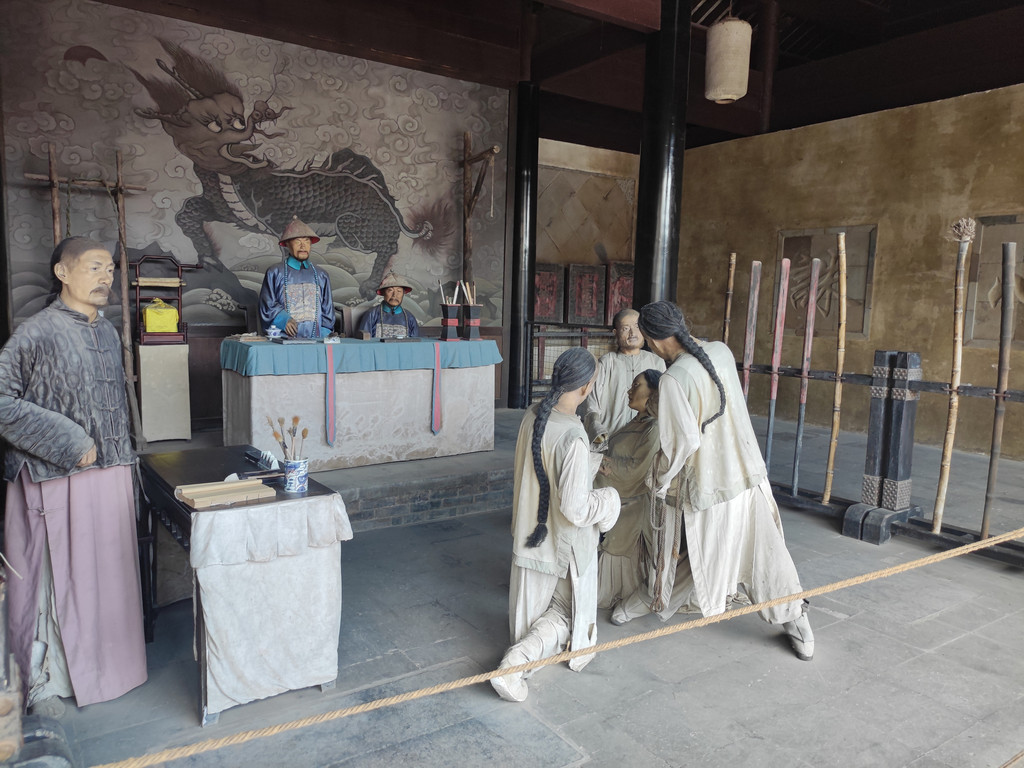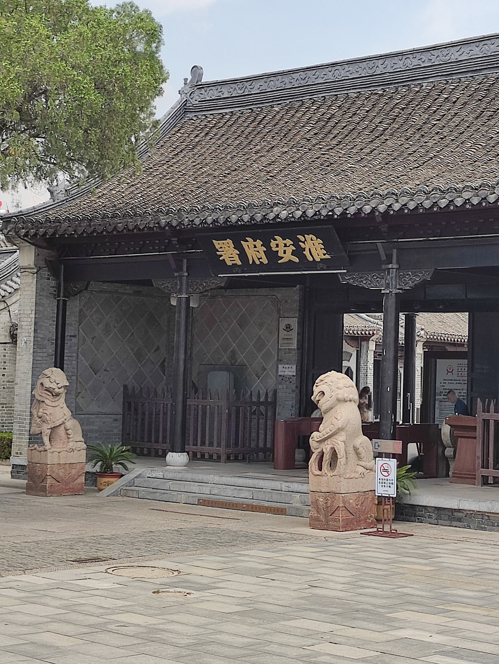 淮安府署,是我国已知现存规模最大,品级较高,保存相对完好的明清知府衙门,匾额上的还淮安府署四个字,是标准的仿宋印刷体,根据文上武下的规矩,两侧左右(东西)分布,对应朝廷直属办事机构六部、吏、户、礼、兵、行,工。东路为文官工作以及迎宾、游宴之所,西路则为武官工作之所,设有军府、厅。牢房等建筑,大堂是附属的核心,是知府迎送圣旨、举行大型庆典、审理重大案件的地方,作为其职权的象征,也是府衙也是府内规格最高、体量最大的建筑。印象深刻的是大堂内楹里二曰,“吃百姓之饭,穿百姓之衣,莫道百姓可欺,自己也是百姓。得一官不荣,失一官不辱,莫说一官无用,地方全靠一官。”穿过大厅就是熬审房代之所、皮厂庙等关押犯人。且用刑的地方,里面用文字、刑具、模型、蜡像完美演绎了当时犯人遭受酷刑的场景,触目惊心,不忍直视。我没有多拍照,穿过血腥之地,后堂是知府及夫人的书房和卧室,雕梁画柱,美轮美奂,唯一觉得美中不足的就是离前堂太近,住着有点儿瘆得慌。后花园儿原名偷乐园儿,天启年间准安知府宋祖顺认为偷字不雅,改为余乐园。现园内有映月桥、船坊、音乐台、字母塔、水边台叫三槐台。台上四根铜柱儿,柱上均有铭文儿,用以镇压淮河水患。关汉卿以淮安府衙为题材,编写了戏剧《窦娥冤》。