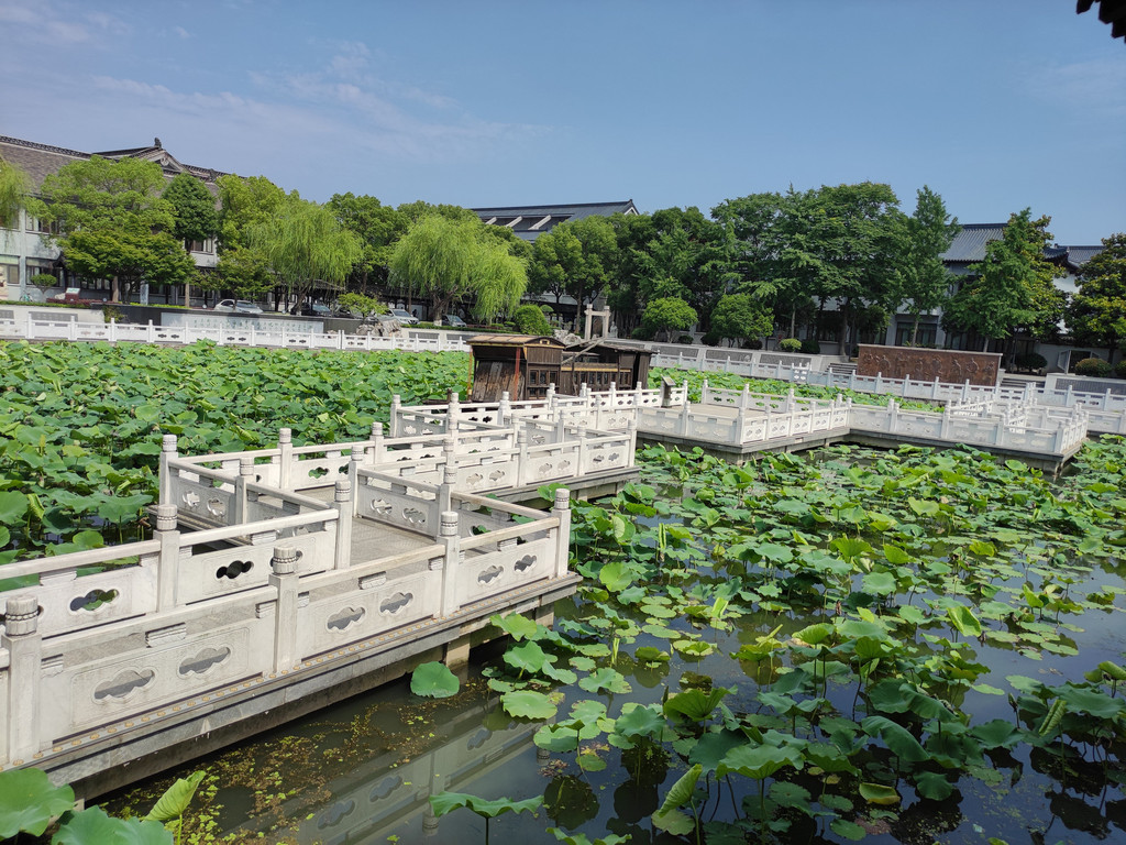一早乘车来到清晏园,及步行到苏皖边区旧址(距离很近)再来到花街和里运河文化长廊。我是从总督河道部院入口进到清晏园的,一个市民小公园,但也有湖泊和假山和楼亭等。