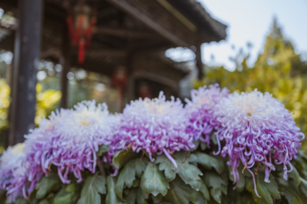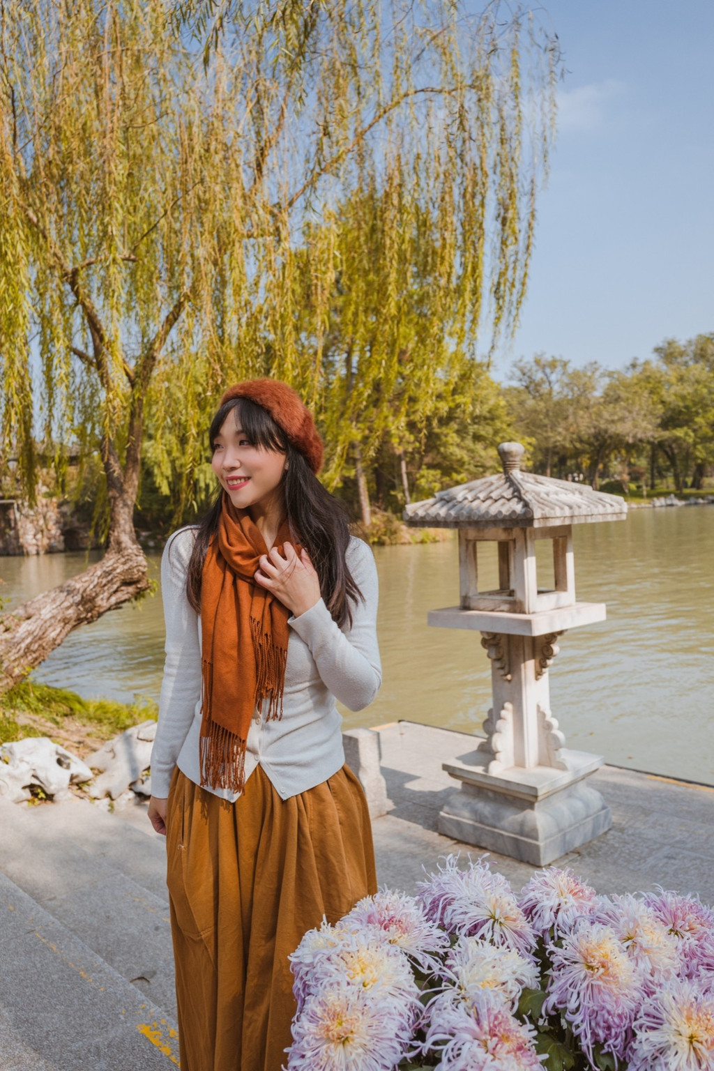 我在瘦西湖看过争奇斗艳的菊花展,明艳娇贵,每一朵都开成我心中的惦念,我在何园变装古风拍照,亭台楼阁,假山红枫流连在旧时光里,当黄昏没有晚霞的时候,无边的秋色依旧浪漫。