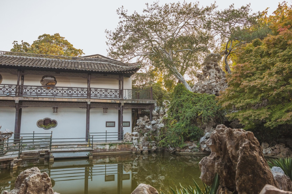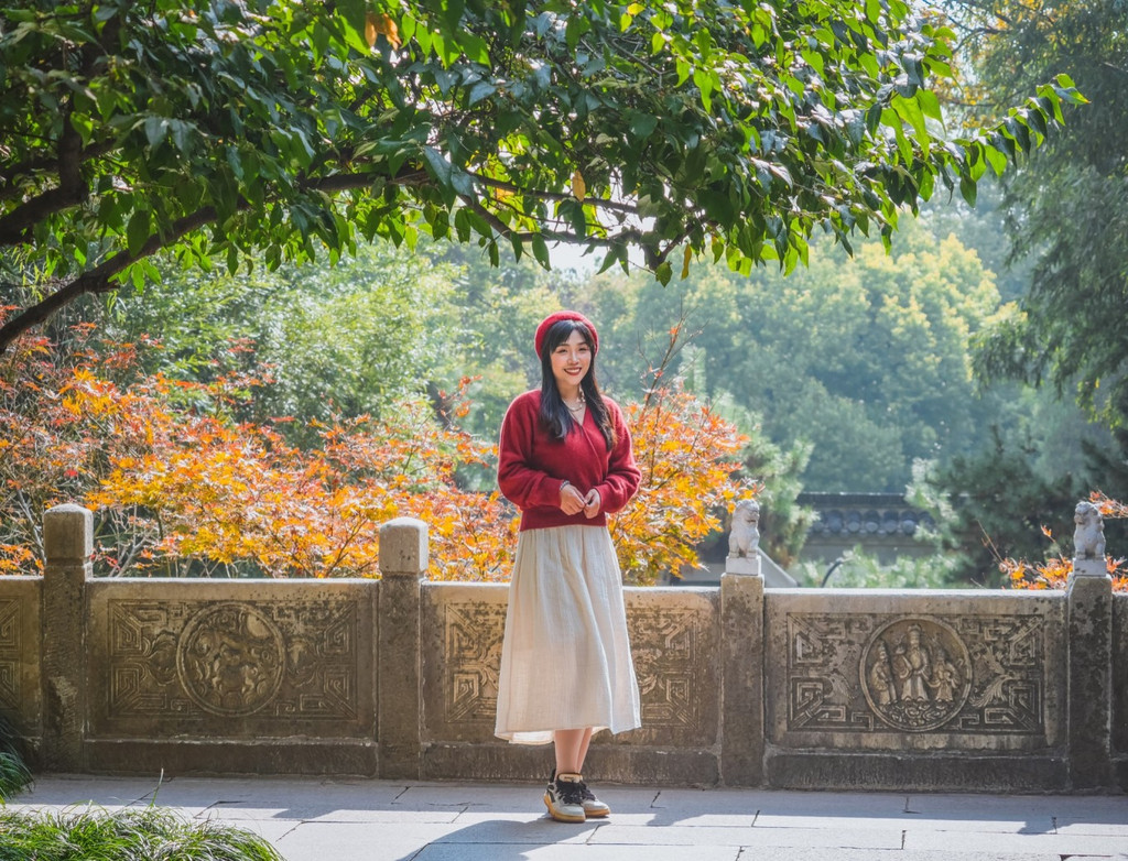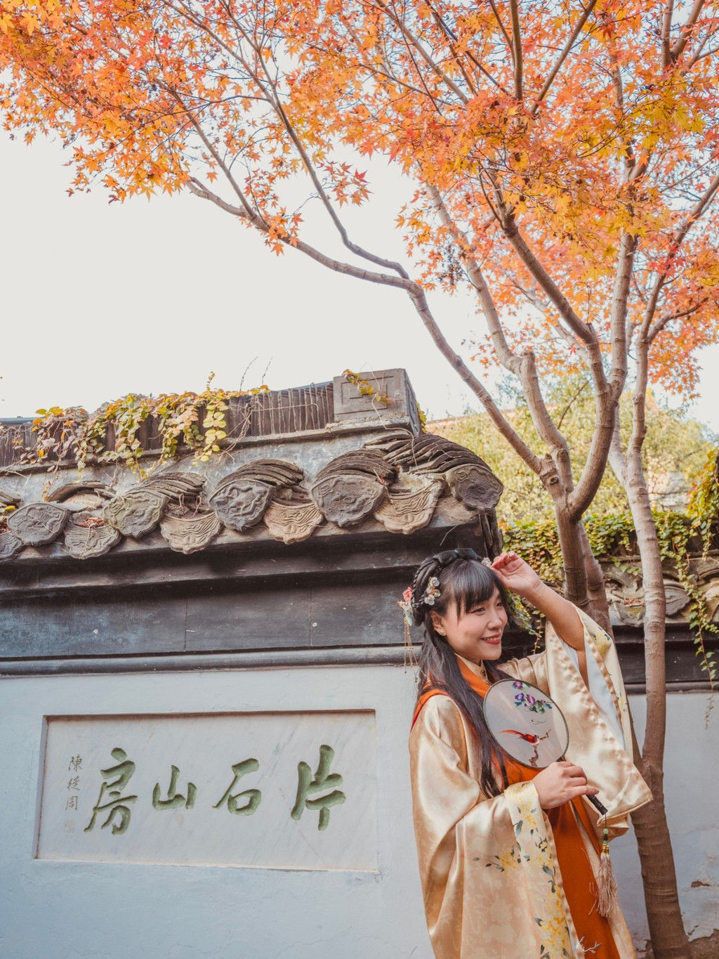 何园春看玉兰秋看鸡爪槭,经典的水心亭机位太火爆,不过我们去的时候略早,11月中下旬肯定美哭了!片石山房有棵红枫颜色正好,好一幅秋日美拉德!