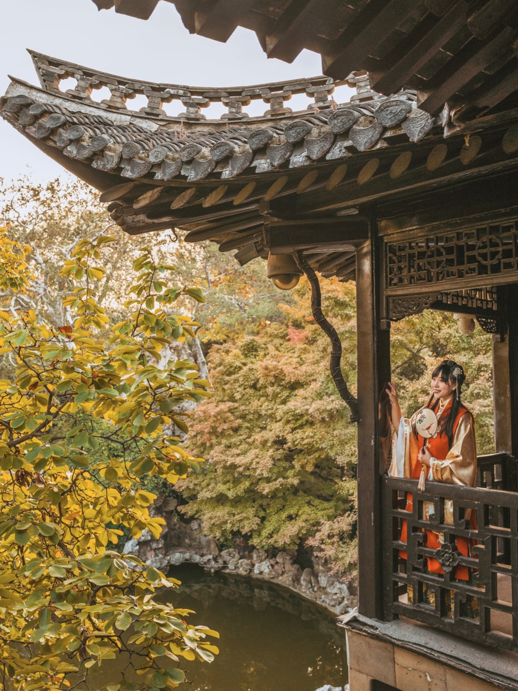 ✅在东园有景区自己的古装换装体验,提供发型,拍出的照片很有氛围感哦,假装一天穿越时空大小姐李玉湖,在园子里感受古色古香的园林美景。