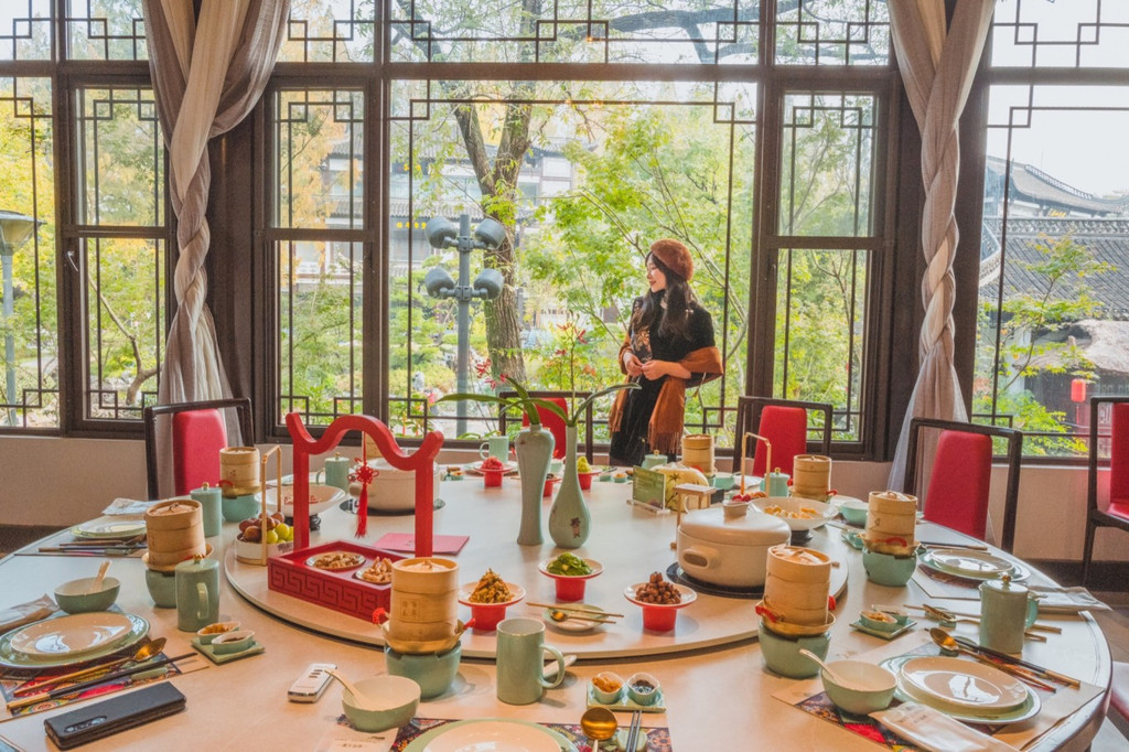 临河水阁景致一绝,还有现场演奏的早茶精致又高雅,千层油糕、蟹黄汤包、细沙包、香菇菜包,冶春蒸饺、五丁包、虾籽饺面,这碳水盛宴吃完只想找个小船荡漾湖中,悠闲听曲!