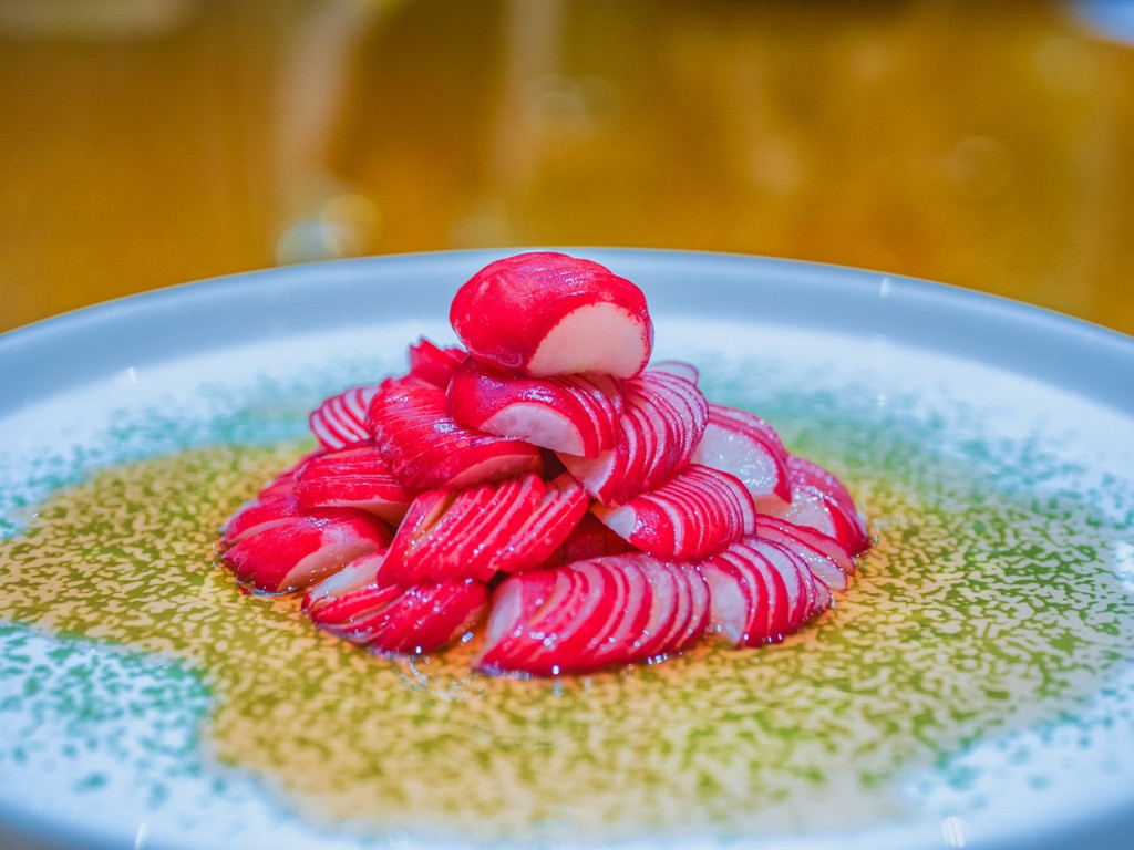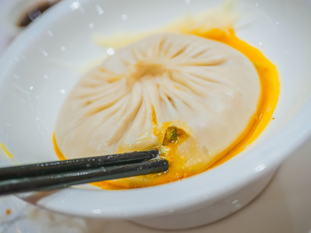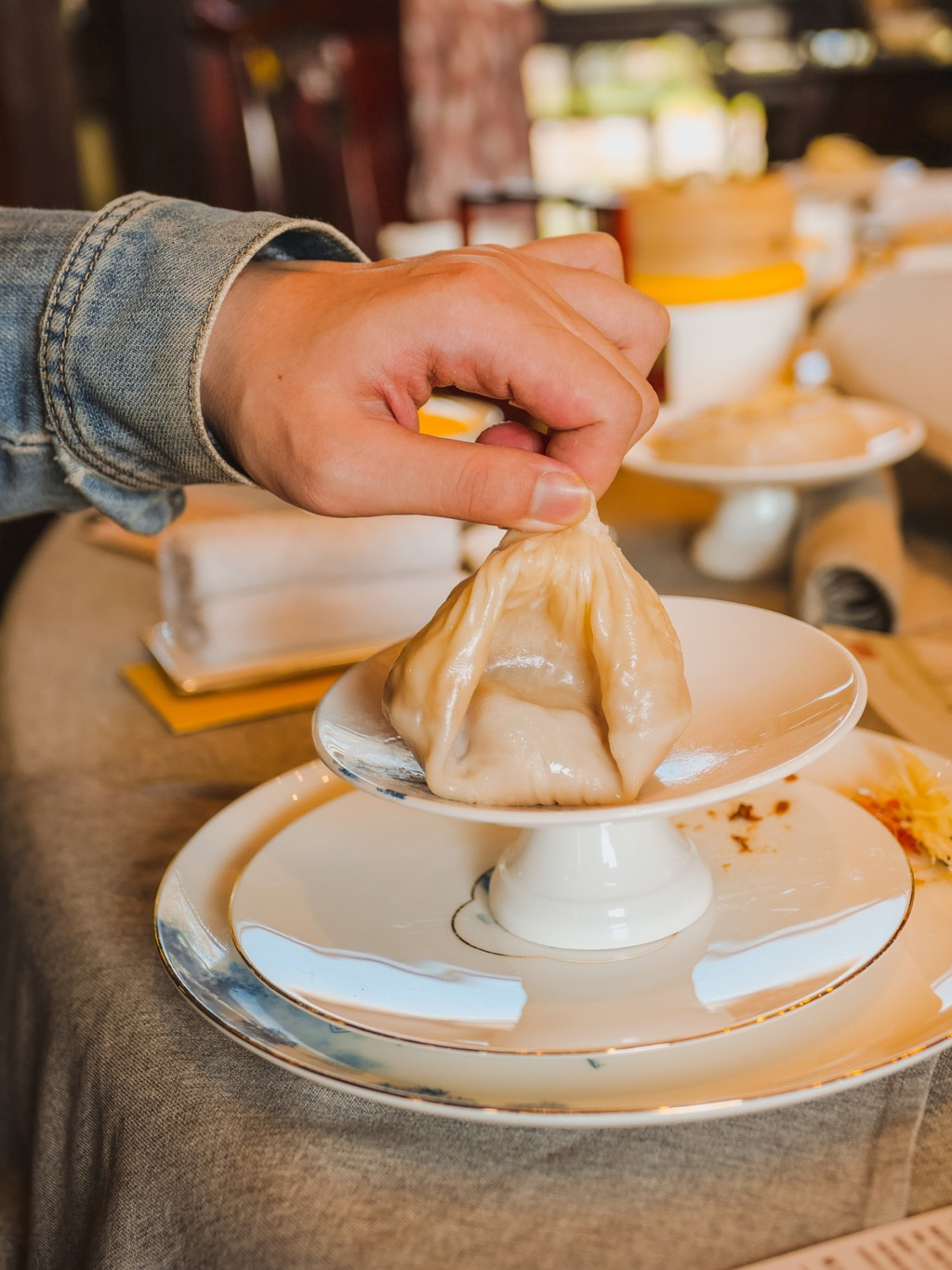 拥有专门吃包口诀的一款名点,“轻轻提、慢慢移、先开窗、后喝汤、一扫光、满口香”,薄皮包裹着油润的蟹汁,宛若一个艺术品,但别迟疑太久,蟹黄汤包一定要趁热吃,在包子侧面咬开一个小口把美味汤汁喝掉,再配上醋把包子一扫光,真的太滋润了!