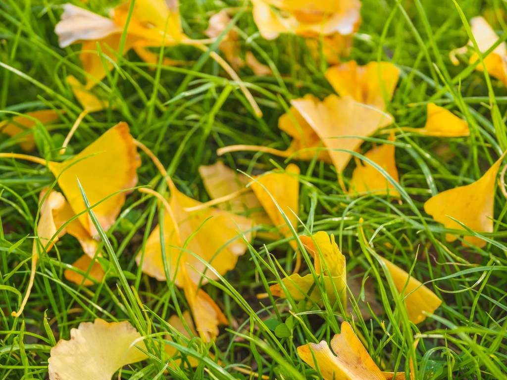 门口两棵对称高大的雄银杏到秋天美成一首诗。