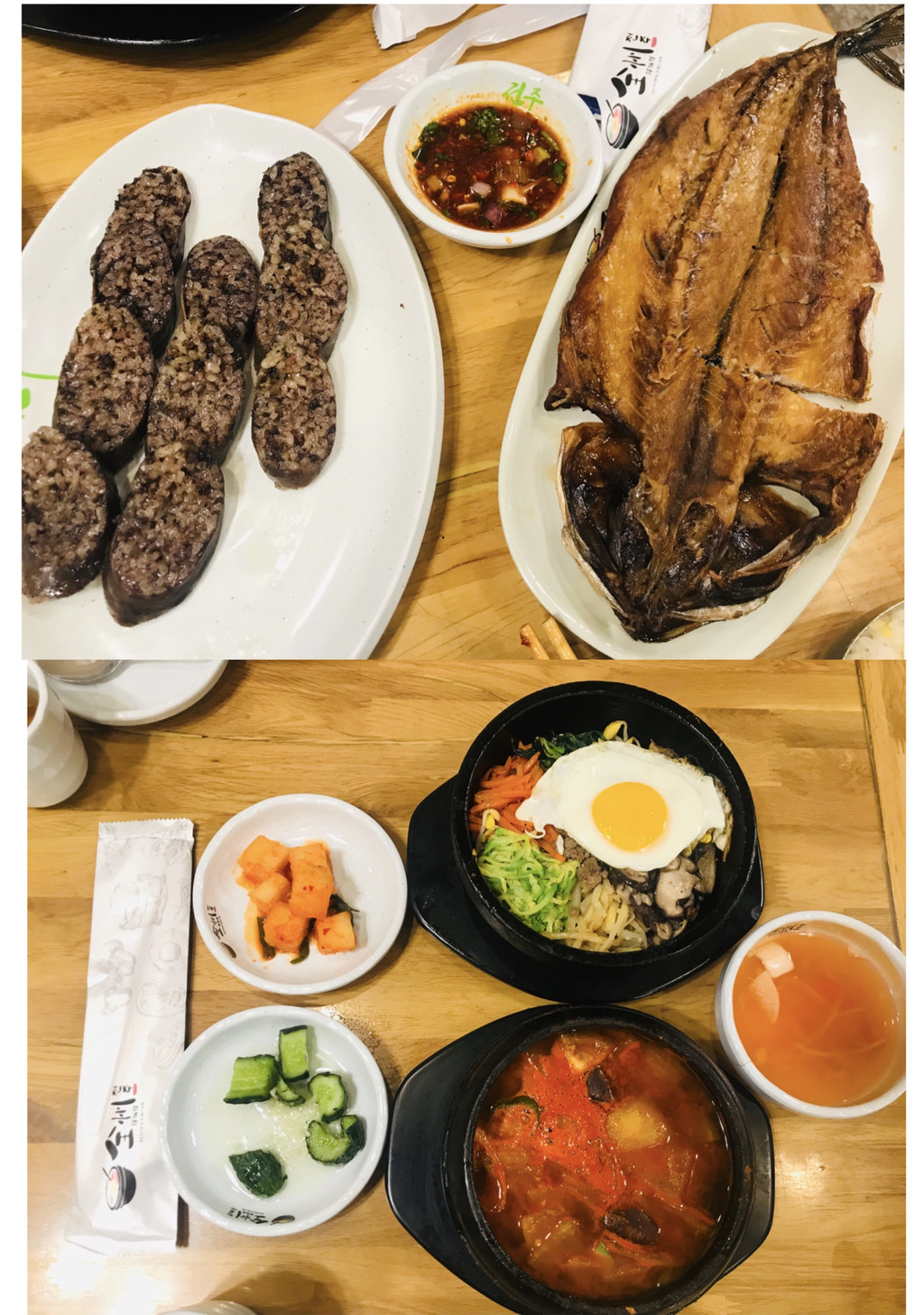 我们点了一份石锅拌饭,一份米肠,一份煎鲅鱼,其实个人觉得全州拌饭和烤猪肉拌饭更好吃,米肠依然不错,煎鲅鱼有点咸。