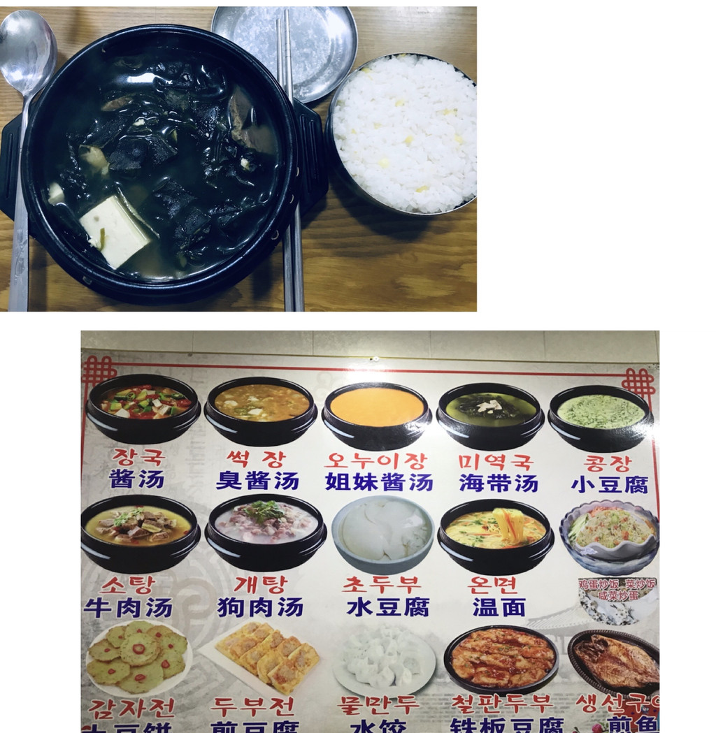 毫不夸张的说这是我在延吉吃过的最好吃的一餐,早上九点开门就已经高朋满座了,人气非常旺!点了一个综合包饭,一个海带汤,一个辣炒干明太鱼,一个米肠。包饭味道不错,吹爆海带汤和辣炒干明太鱼!!!明太鱼微辣带点甜,海带汤不腻不咸,入口刚好。以至于后来几天我都心心念念着海带汤。